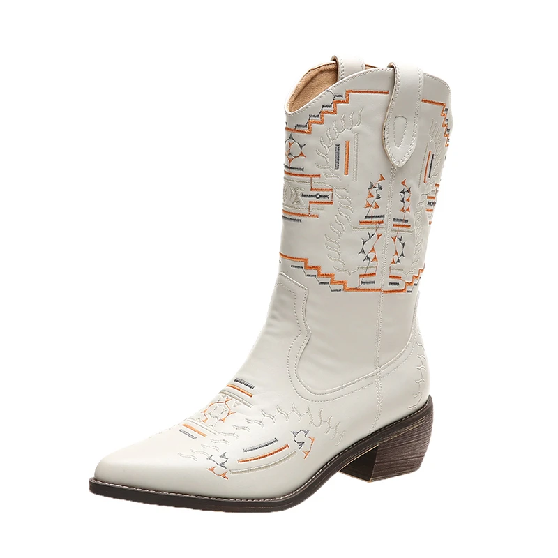 Новинка 2021, модные женские зимние ботинки, женские ботинки с вышивкой в стиле ретро, рыцарские ботинки, женские ботинки, женские ковбойские ботинки в западном стиле