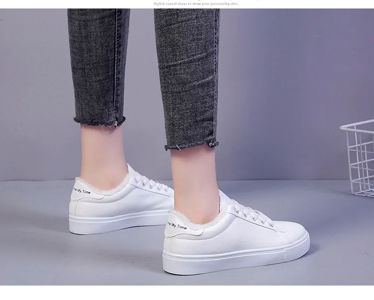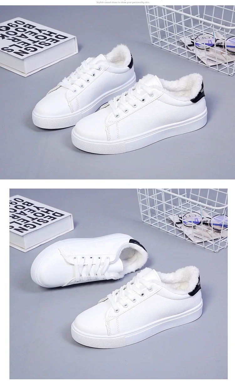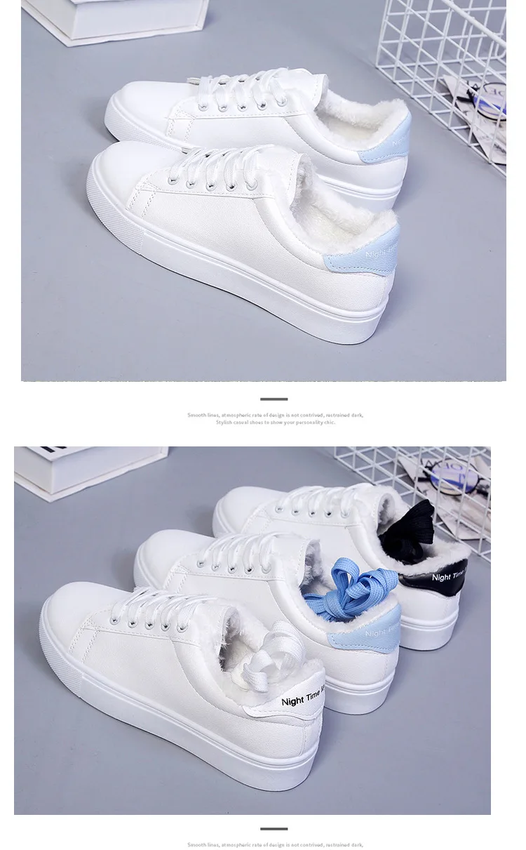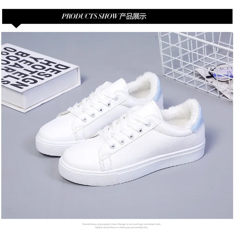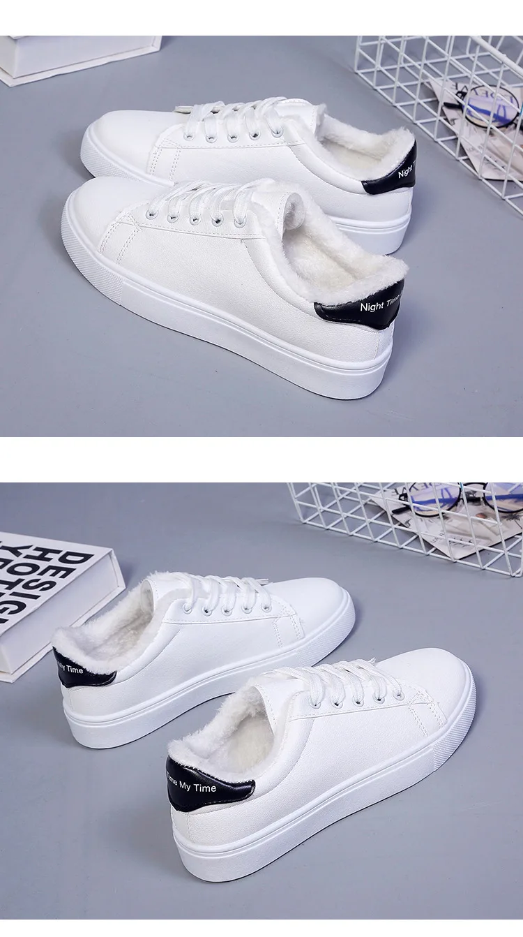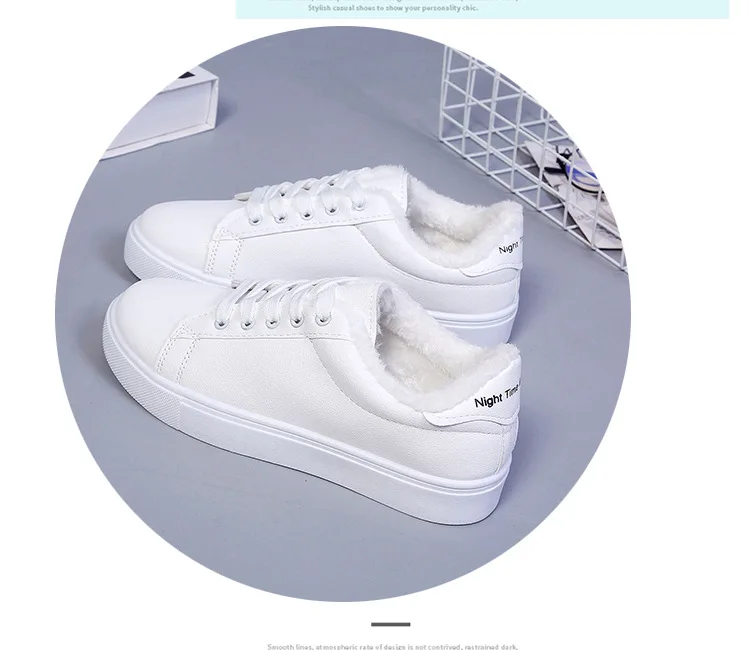 Женские кроссовки, зимняя дышащая обувь с вулканизированной подошвой, женская обувь из искусственной кожи на платформе, Дамская Повседневная обувь на шнуровке, Белая бархатная обувь