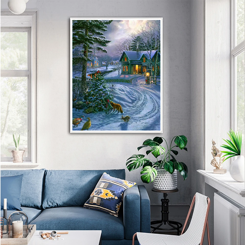 5D алмазная живопись сделай сам, пейзаж, алмазная вышивка, зимний дом, полноразмерная мозаика, Набор для творчества, хобби ручной работы