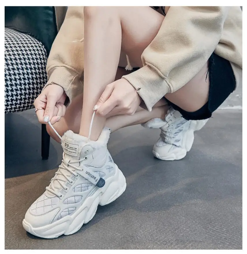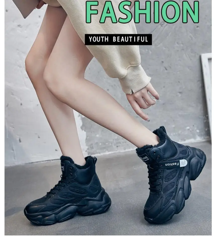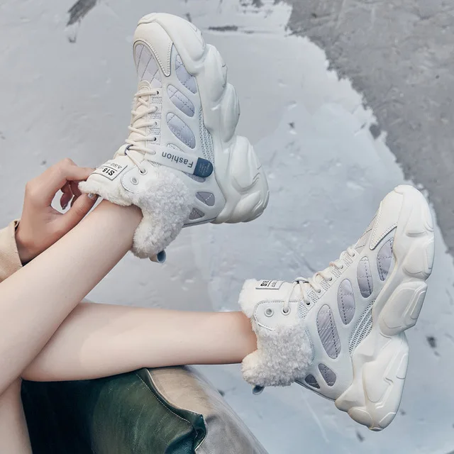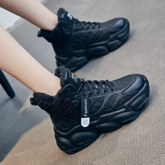 Женские зимние кроссовки на толстой подошве, с хлопковой подкладкой
