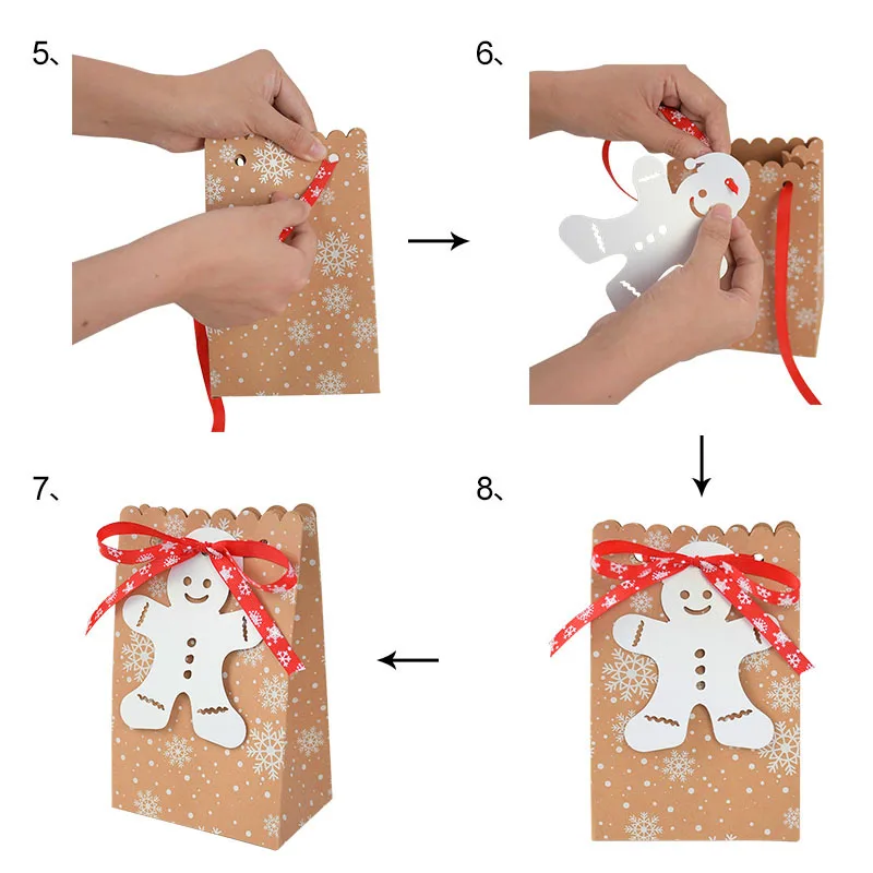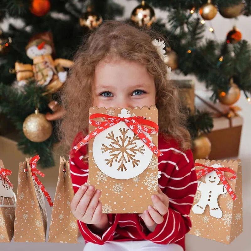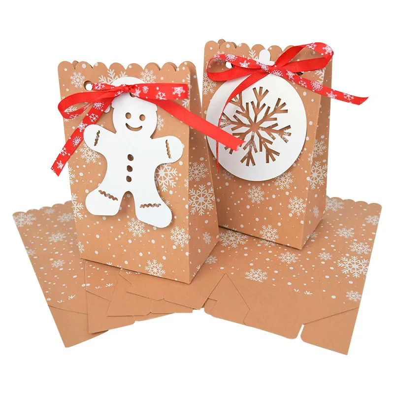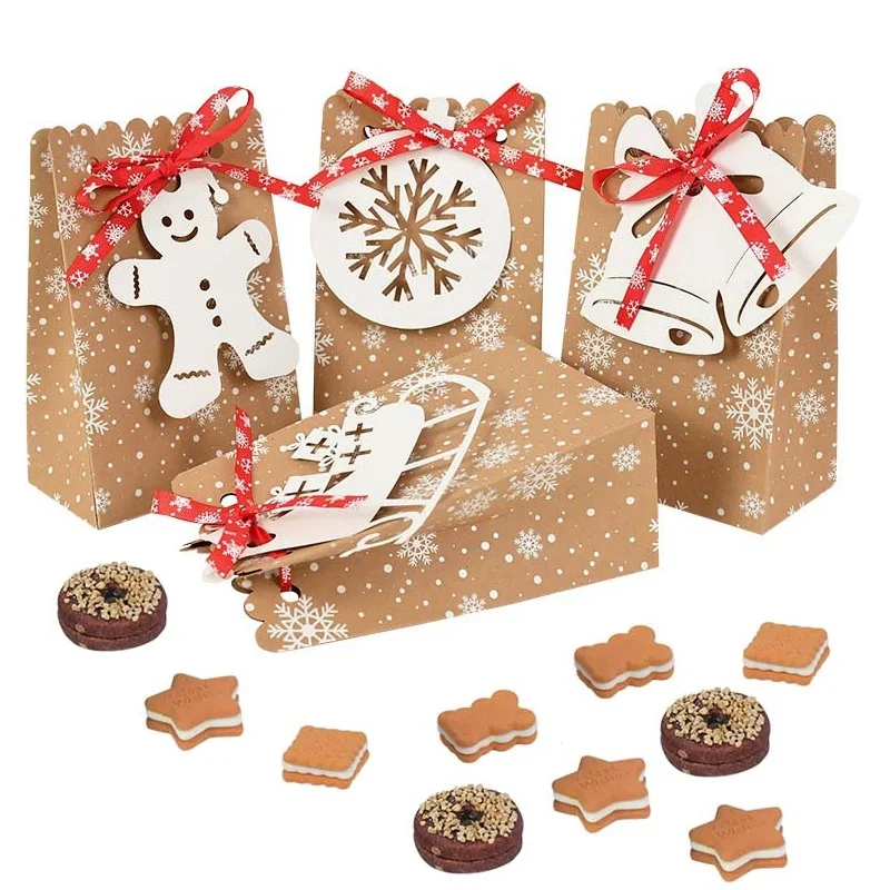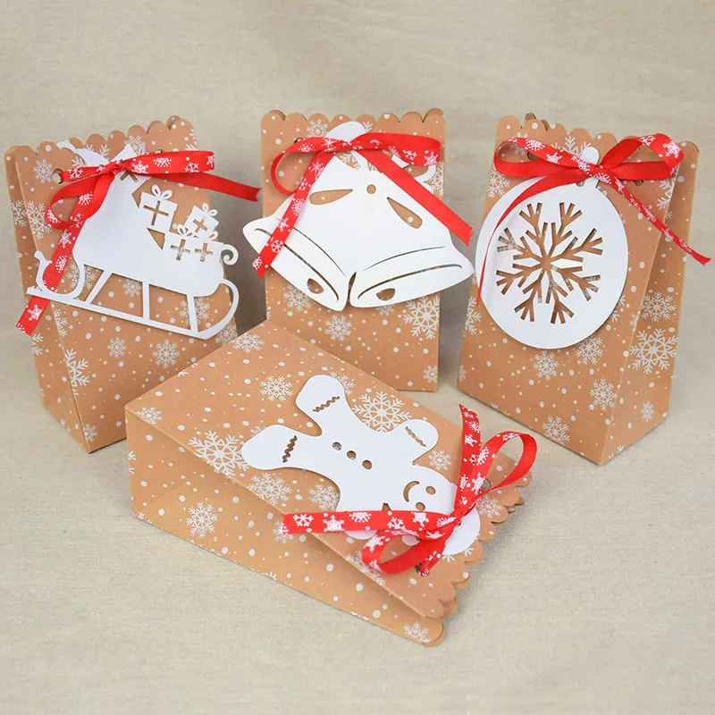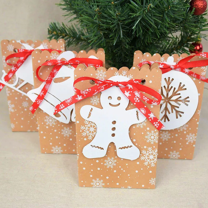 4 шт.лот Рождественская коробка из крафтовой бумаги для конфет пече...
