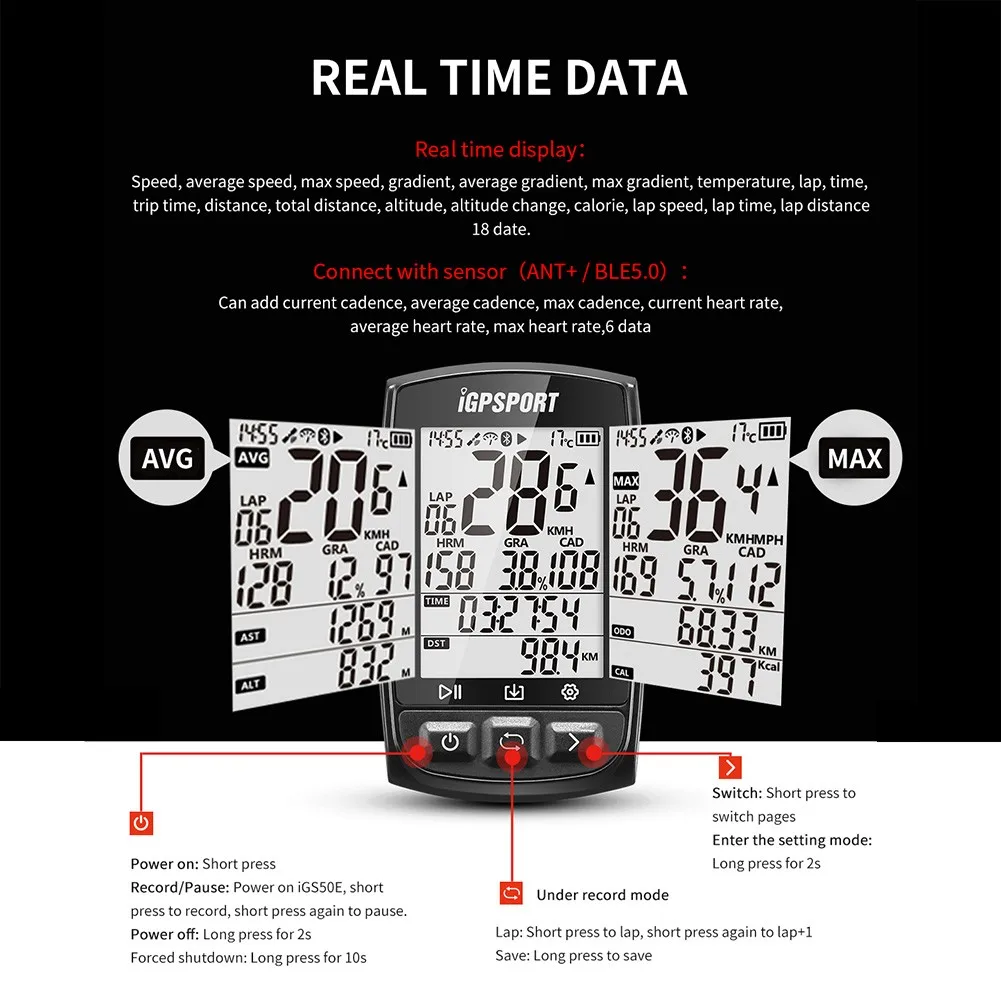 Велокомпьютер IGPSPORT IGS50S, 2,2 дюйма, антибликовый светодиодный экран, водонепроницаемые детали для спорта на открытом воздухе, велосипедные аксессуары
