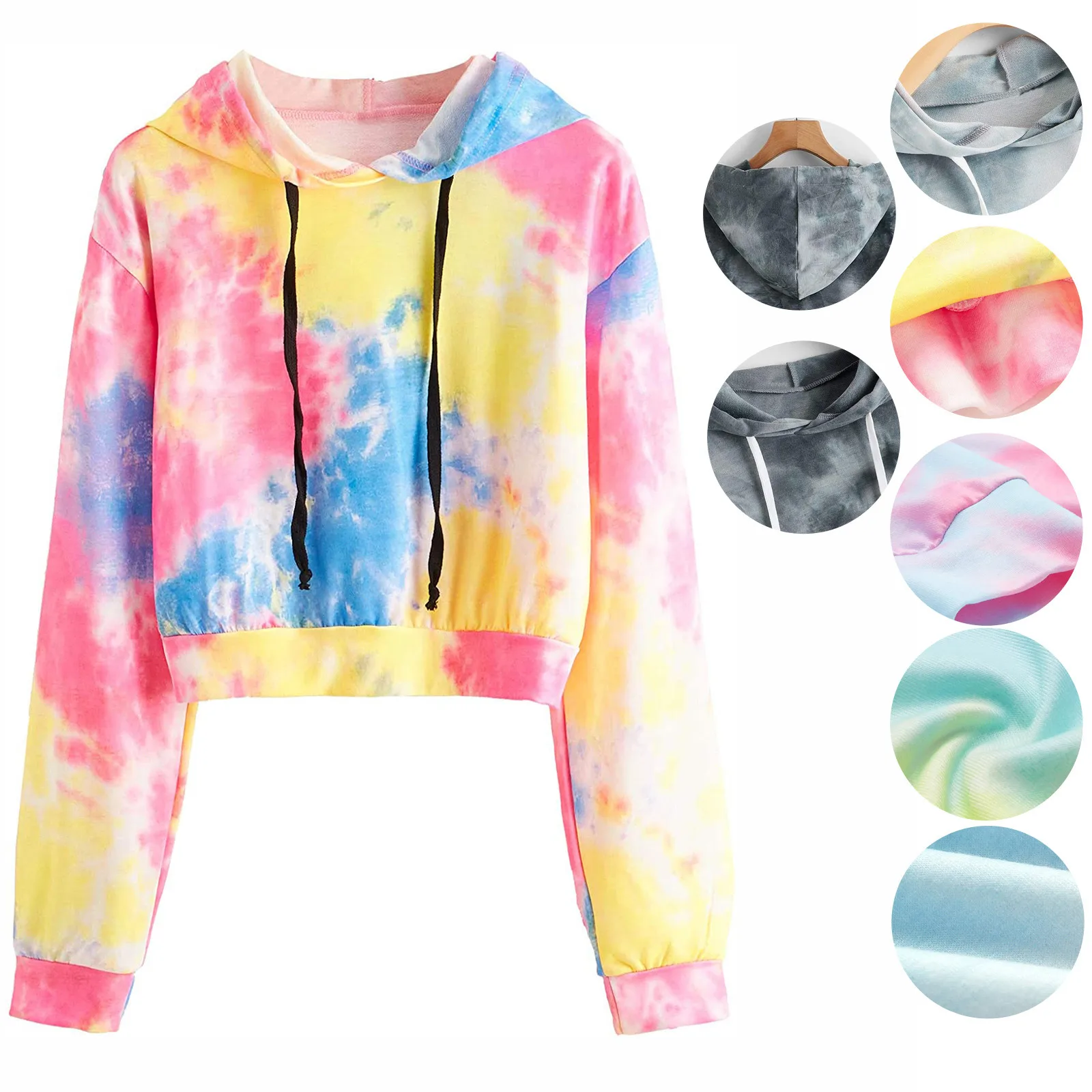 1. Особенности: модные женские топы, с круглым вырезом, цветные, с длинными рукавами, с капюшоном, с завязками, свитер, топ.