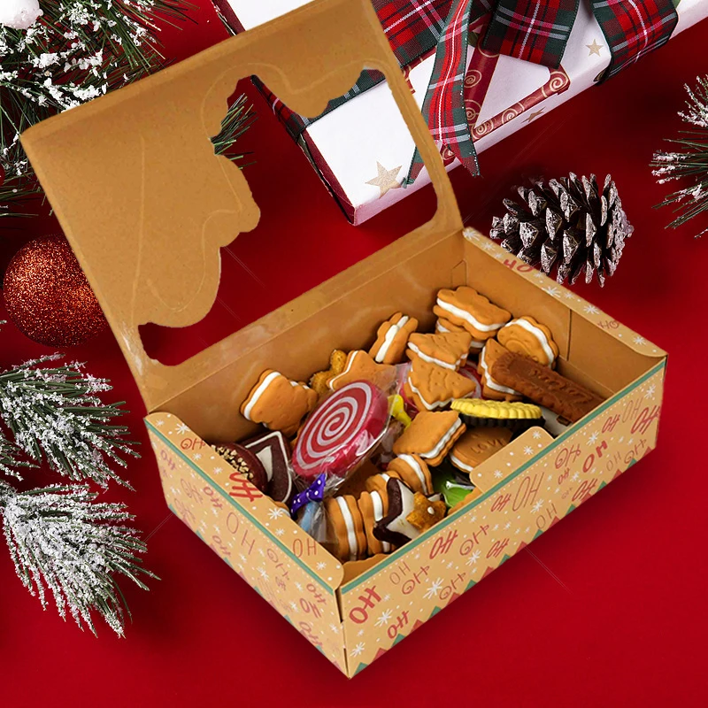 Коробки для рождественского печенья, из крафт-бумаги, с прозрачным ...