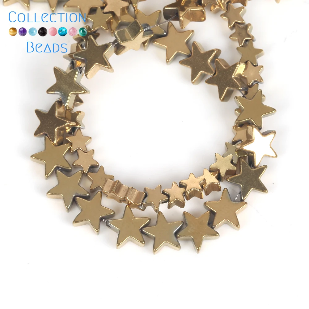 Бусины из натурального камня с золотым покрытием, бусины из гематита с пятиконечной звездой для самостоятельного изготовления ювелирных изделий, браслет