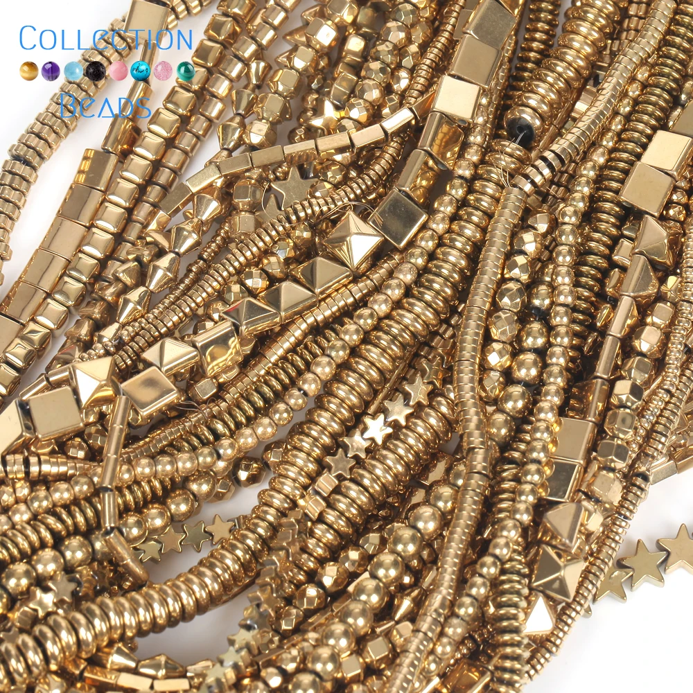 Бусины Из Натурального Гематита, золотые звезды, сердце, Квадратные...
