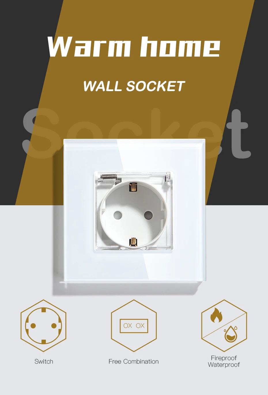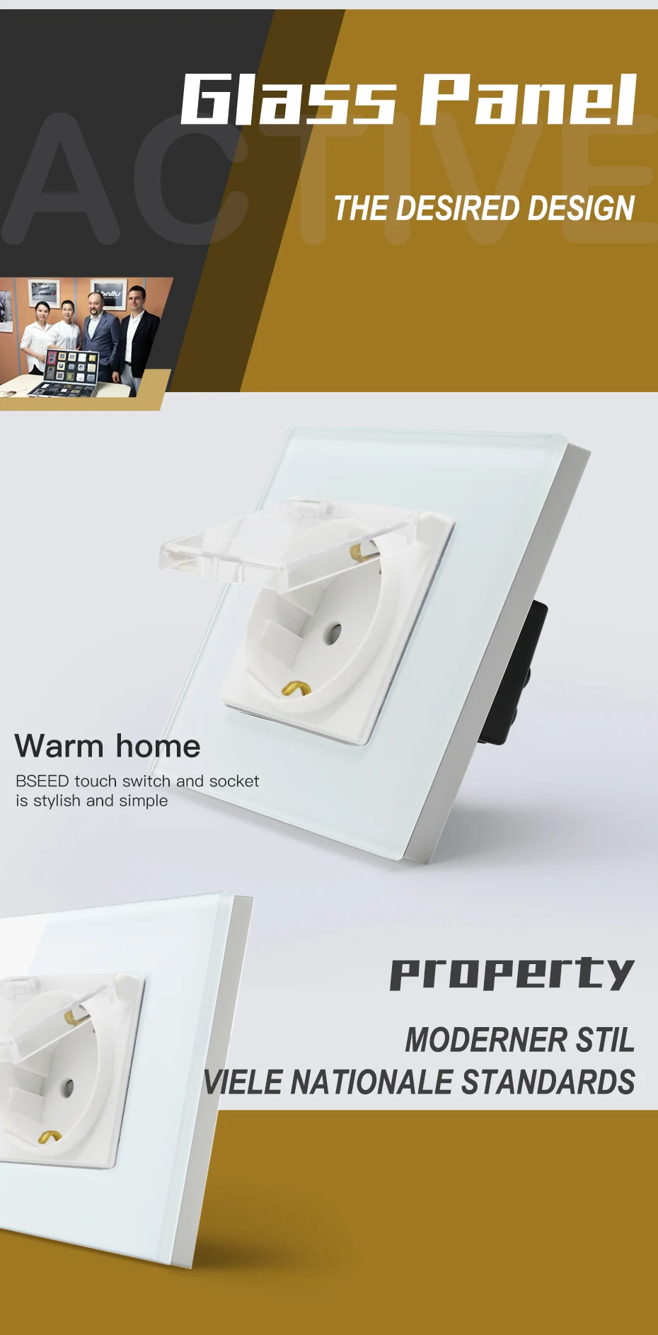 Настенные вилки BSEED гнездо питания стандарта ЕС с пластиковой крышкой, 250 В, 16 А, хрустальные, водонепроницаемые, для ванной