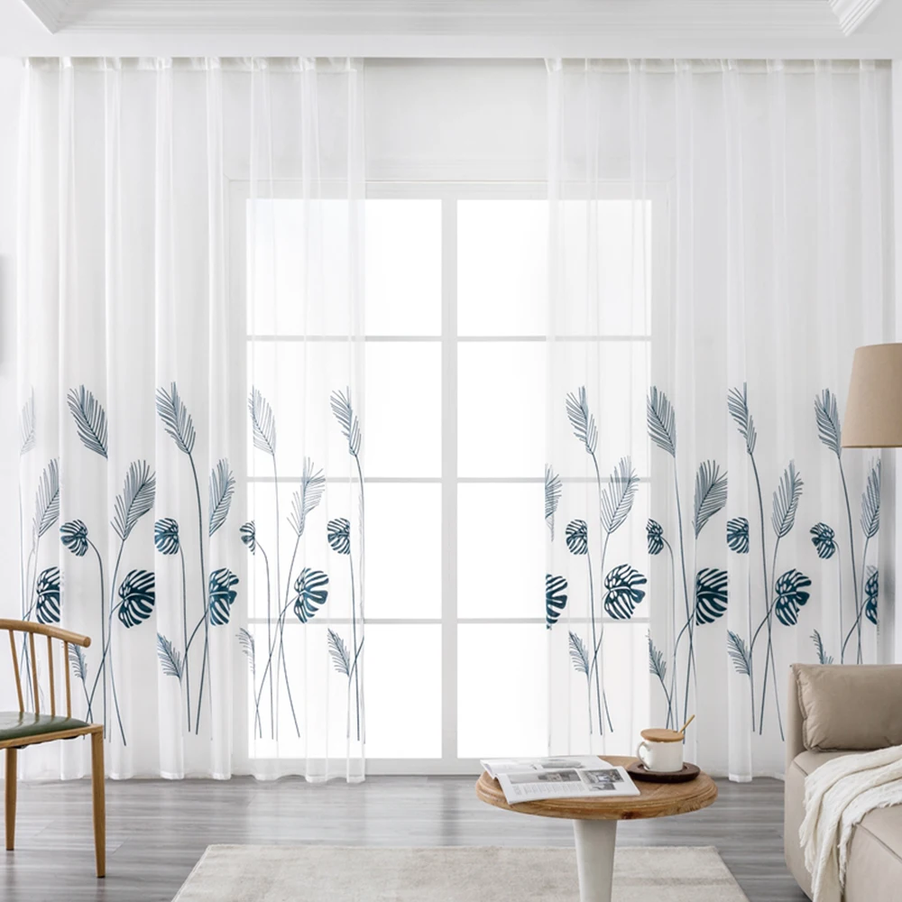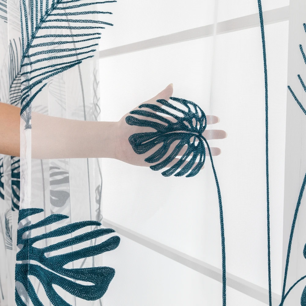 Шторы LISM с вышивкой листьев, прозрачные тюлевые занавески из вуал...
