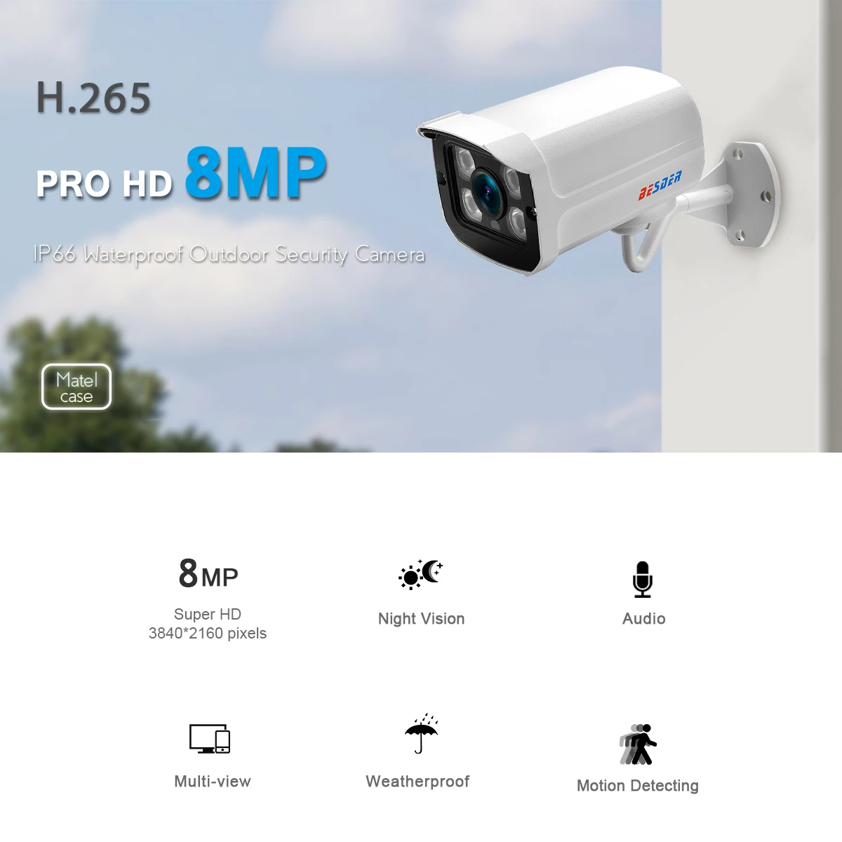 BESDER 8MP 4MP 48V POE камера 4K DC12V H.265 Проводная IP-камера Обнаружение движения Аудиозапись Инфракрасная наружная камера видеонаблюдения