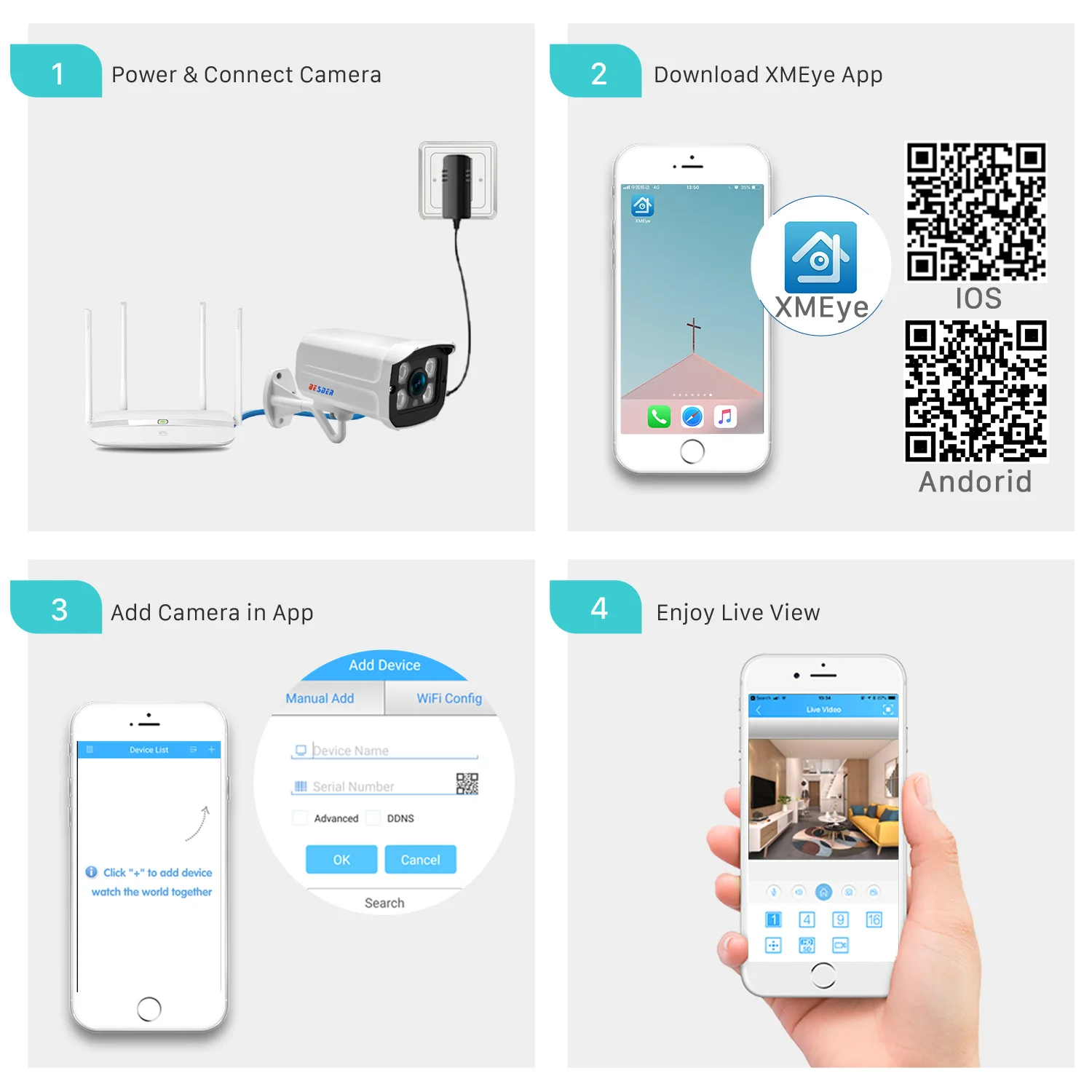 Через приложение Xmeye, когда кто-то проникает внутрь или проходит мимо камеры, камера обнаруживает движение и нажимает изображение или видео уведомление на ваш телефон.