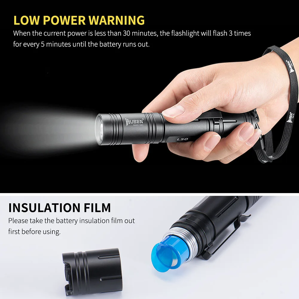 WUBEN L50 USB Rachargeable светодиодный светильник-вспышка Ультра-Яркий 1200 люменов 5 светильник режимы ing с батареей 18650 переносной светильник