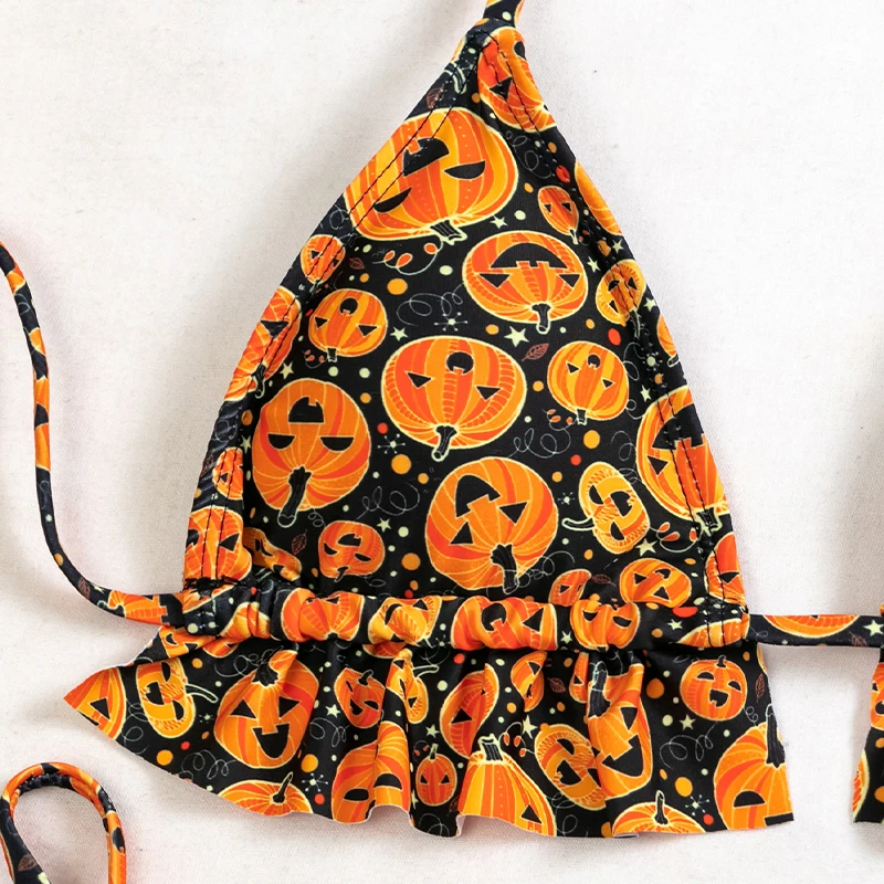 Женский купальный костюм Mossha, купальник-бикини с треугольными оборками и открытой спиной, купальный костюм с принтом, купальный костюм на бретельках