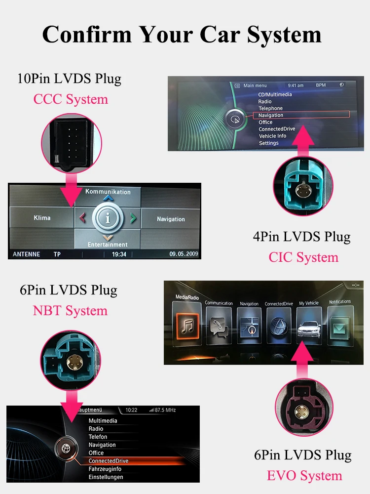 Если ваш автомобиль-BMW X4 F26 2017 год, пожалуйста, проверьте, есть ли у вас меню Радио ID5/ID6/ID7. Если это так, это система EVO. Затем вам нужно выбрать систему EVO для заказа