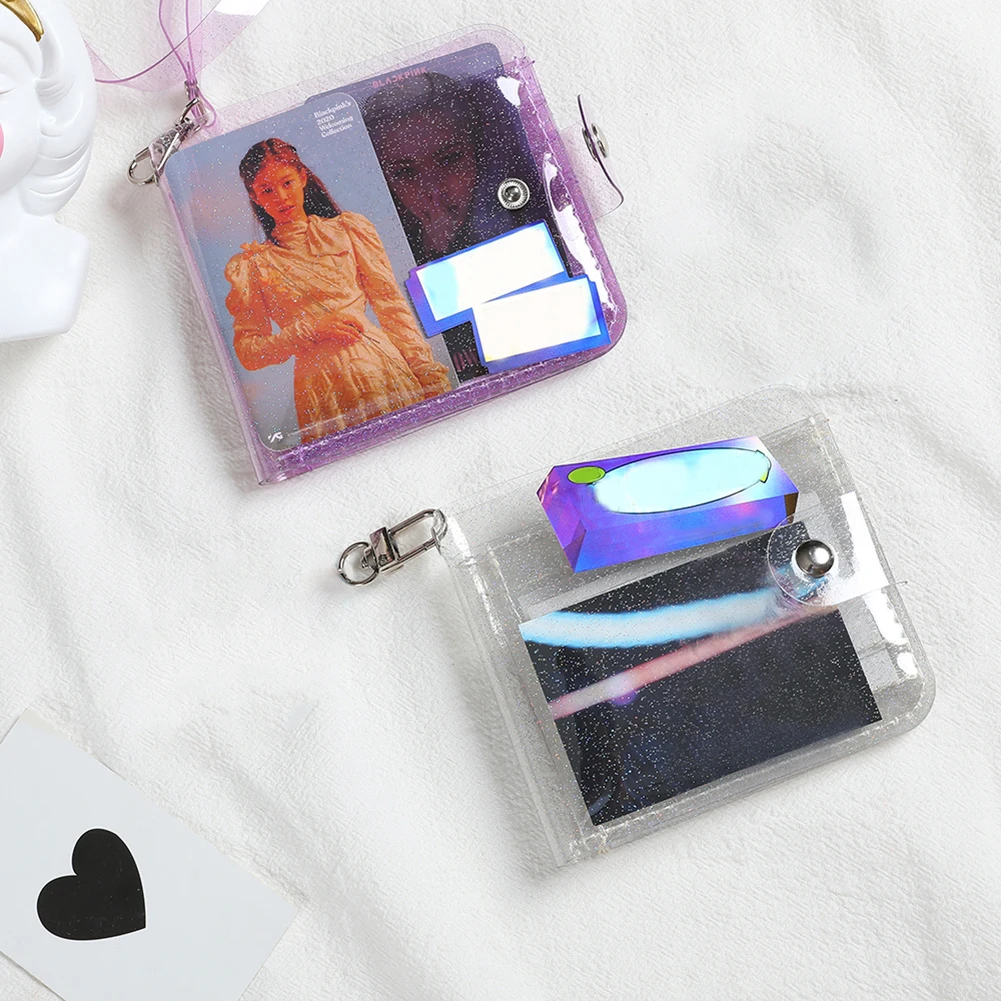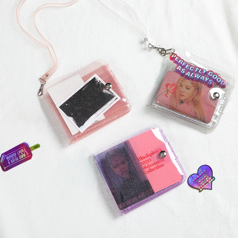 Прозрачный мини-кошелек из ПВХ для женщин, Модный Блестящий Прозрачный короткий бумажник, повседневный Желейный цветной держатель для карт