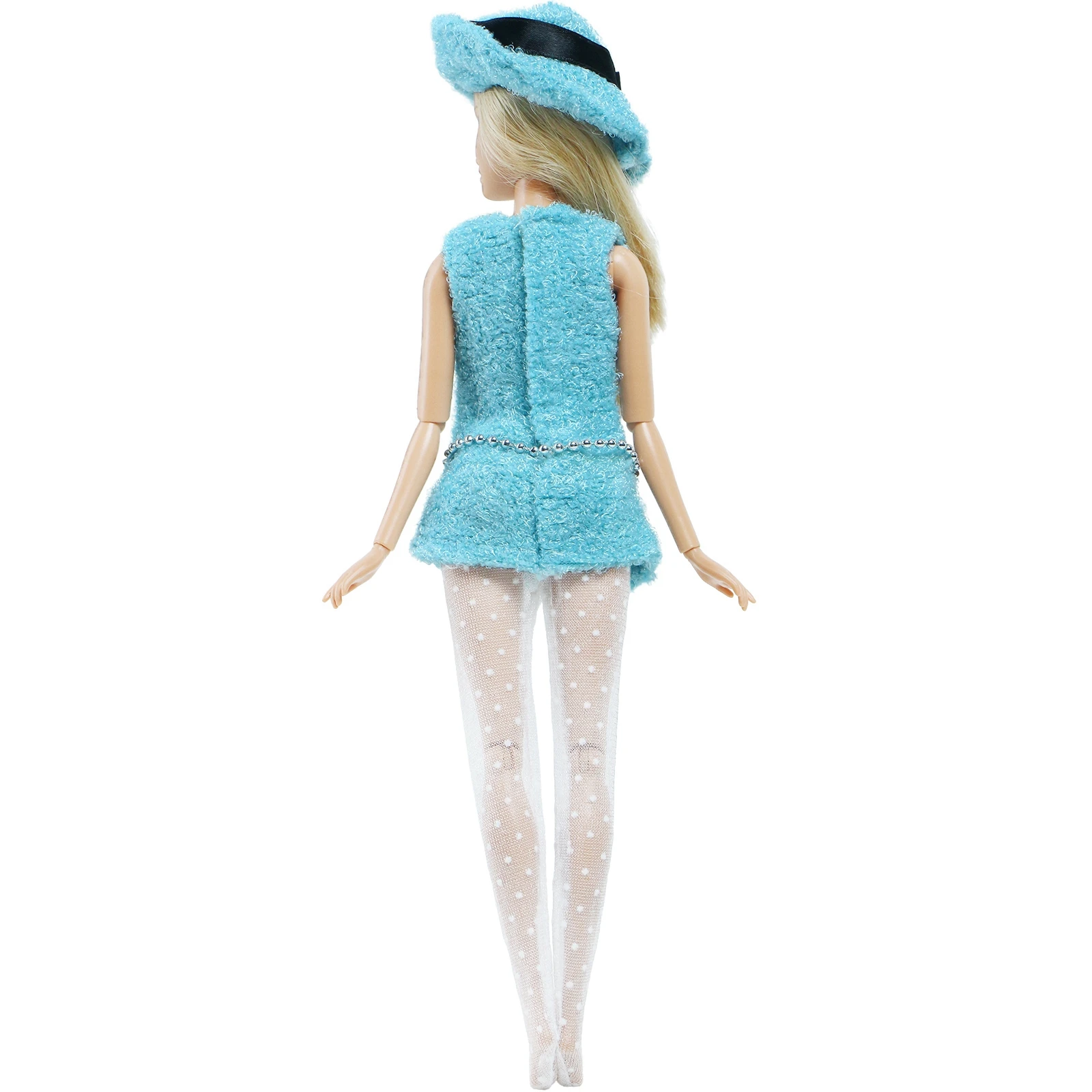 Милые наряды, синий Пушистый Жилет, женская шапка, мини-платье, повседневная одежда, Одежда для куклы Барби, набор аксессуаров для игрушек