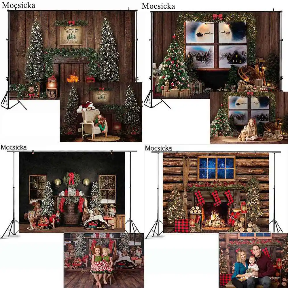 Mocsicka Рождественские фоны Зимний снег камин Рождественская елка деревянный фон игрушка магазин ребенок день рождения портрет фотографии реквизит