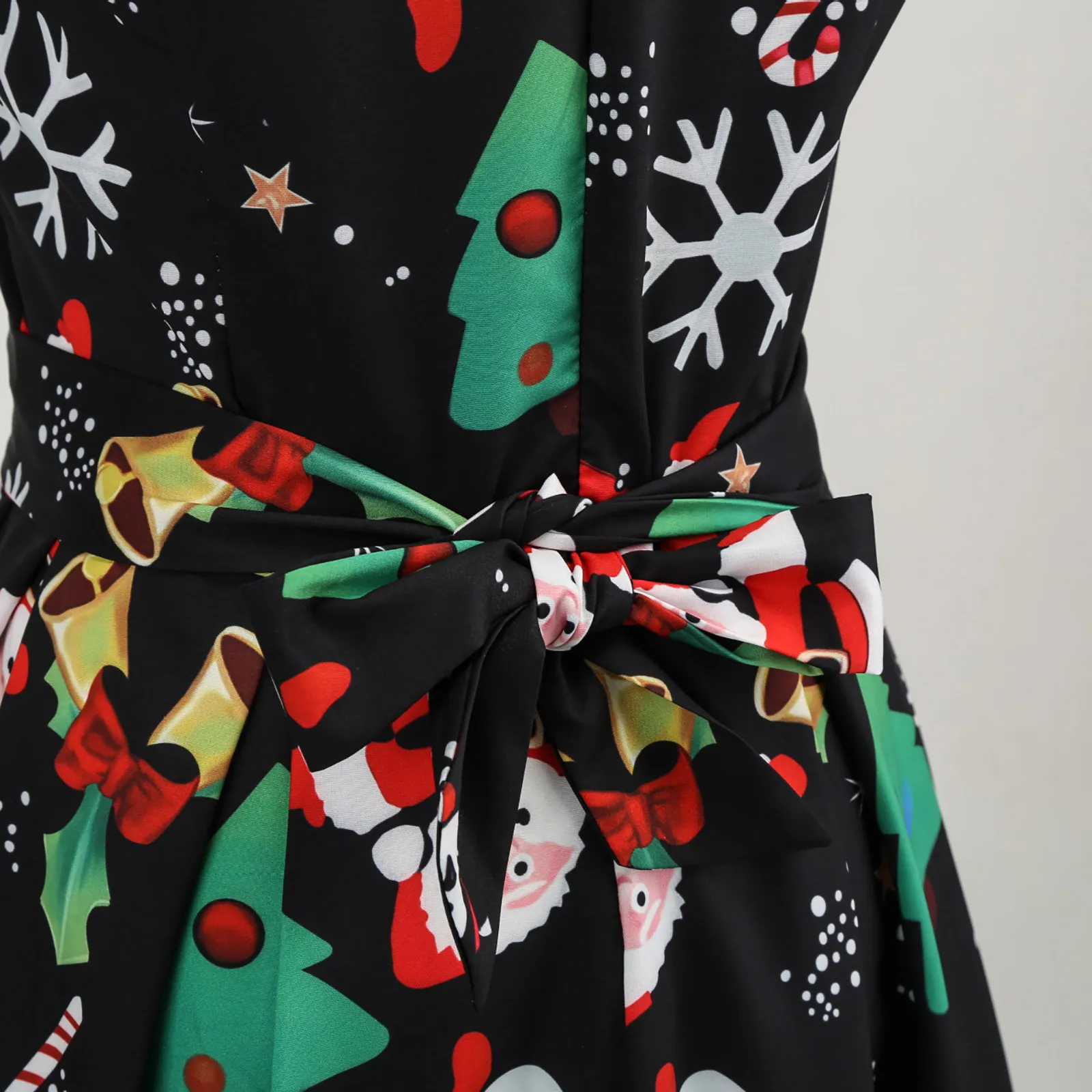 Винтажное платье С рождественским принтом, готический стиль, высокая талия и клеш Дизайн низа может показать вашу стройную талию и теленок, будь то одно или пальто с галстуком-бабочкой, очень красивое