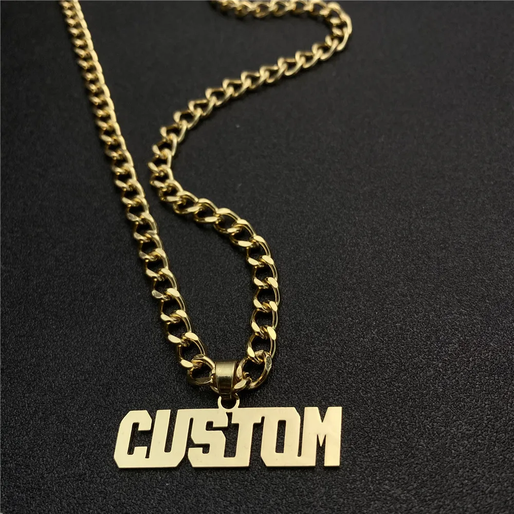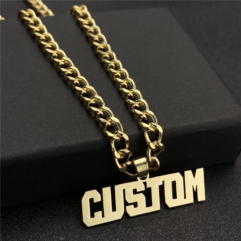 Ожерелье с именем на заказ, крупная кубинская цепь 5 мм, модное мужское ожерелье из нержавеющей стали на заказ