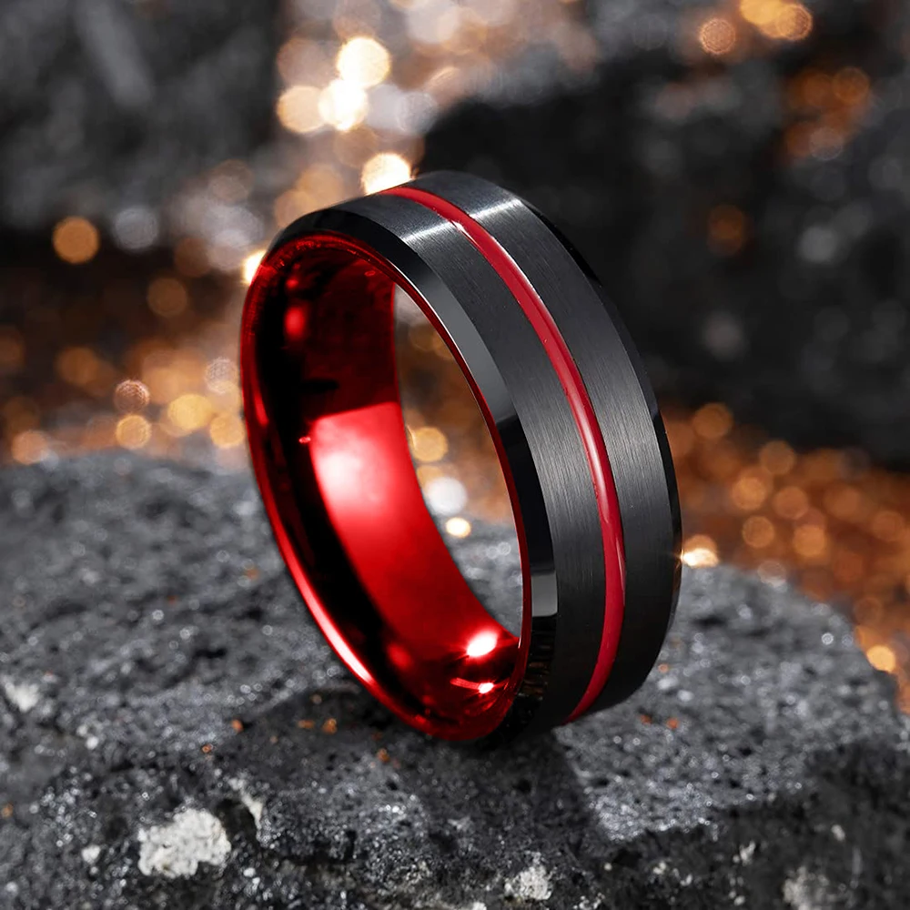 2021 классические мужские кольца 8 мм с красной пазовой скошенной кромкой, черные вольфрамовые мужские свадебные кольца, черные матовые Мужские Свадебные обручальные кольца