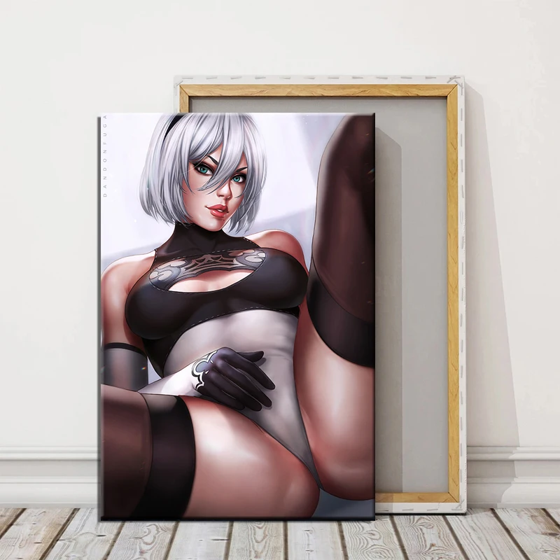 Картина на холсте с принтом на заказ, сексуальная черная униформа для девочек, видеоигры, японская Настенная картина для спальни, плакат в стиле аниме, фильм
