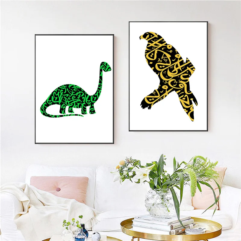 Арабская фотография животных, динозавры и птицы, постер, мусульманское искусство на стену, мусульманская гостиная, детская комната, домашний декор