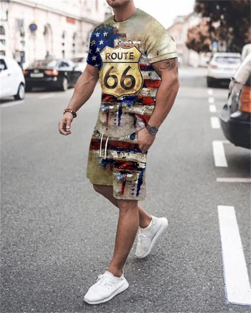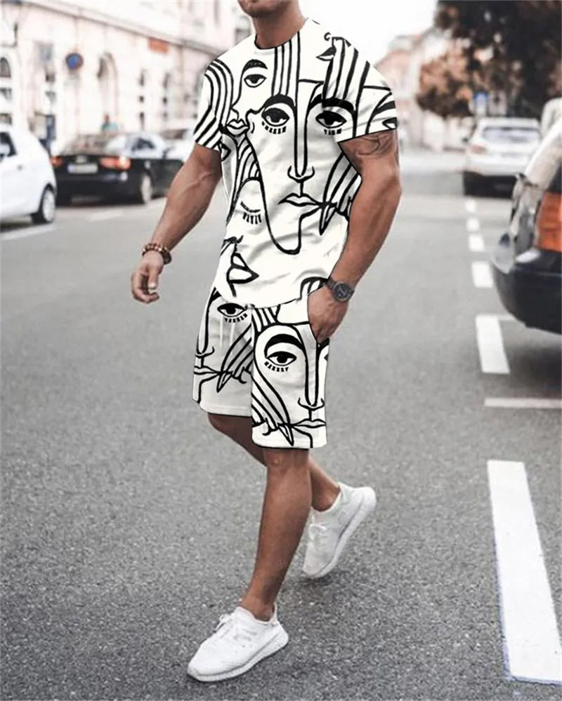 Лето 2021, Мужская Красивая футболка в европейском и американском стиле, Мужской и Женский Повседневный костюм из двух предметов с 3d-цифровой печатью