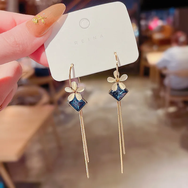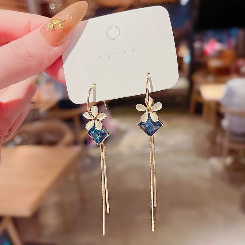 Новые корейские дизайнерские длинные висячие серьги с опалом для женщин, элегантные темпераментные женские серьги золотого цвета, модные ювелирные изделия