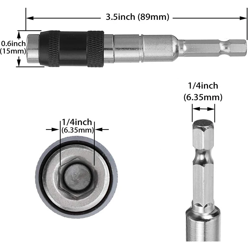 Этот Удлинительный стержень может поворачиваться влево и вправо, поворачивается до 20 градусов, особенно подходит для электрических сверл для затягивания или ослабления винтов в узких условиях.1/4 дюймовый быстроразъемный хвостовик работает для всех электрических сверл и гаечных ключей.Характеристики:Материал: хром-ванадиевая стальЦвет: черныйПривод: 1/4 дюйма с шестигранной головкой (6,35 мм)Диаметр хвостовика: 1/4 дюйма с шестигранной головкой (6,35 мм)Посылка включает в себя:1x магнитный держатель бит (не включает отвертку)