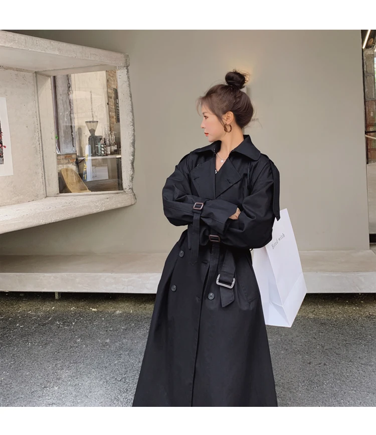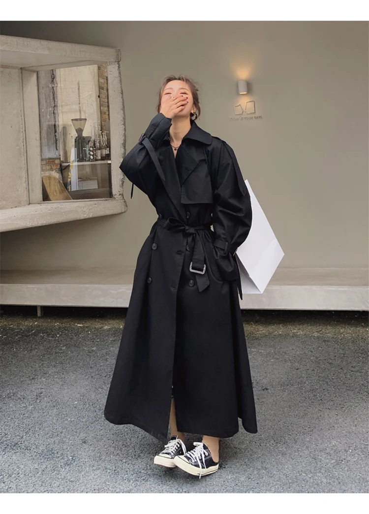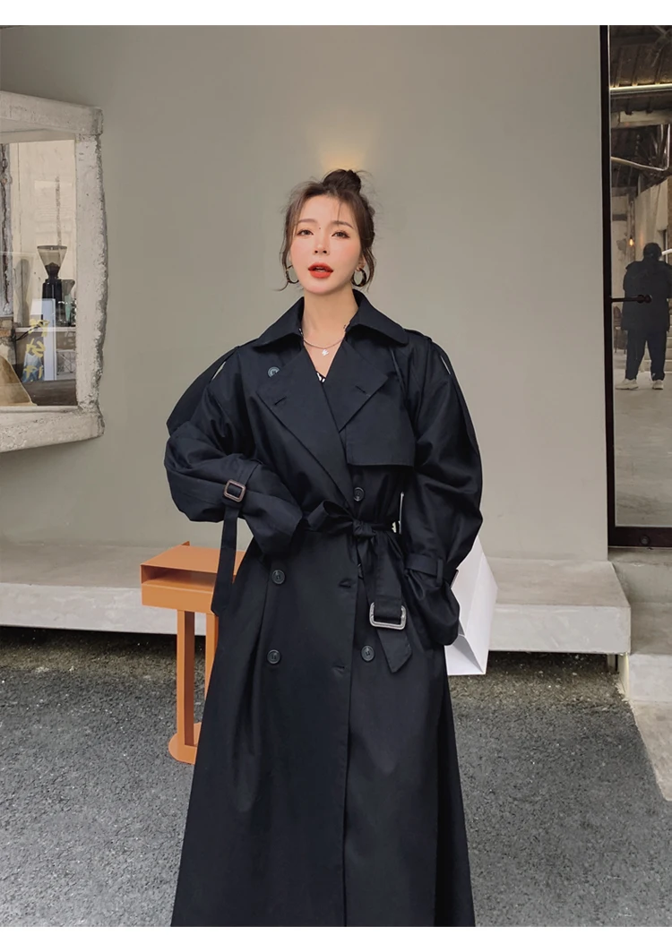 Женский двубортный плащ с поясом, Свободное длинное пальто большого...