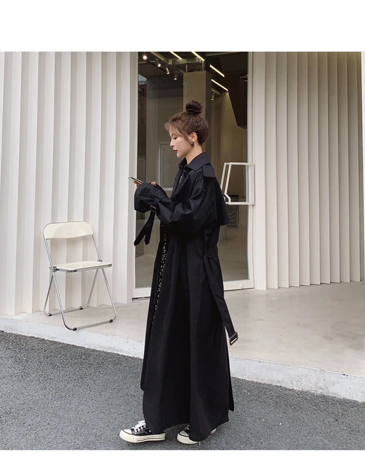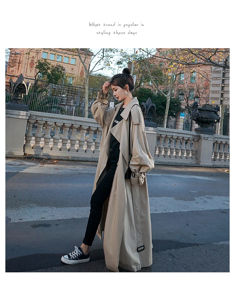 Весенне-осенняя свободная Корейская Супердлинная Женская ветровка д...