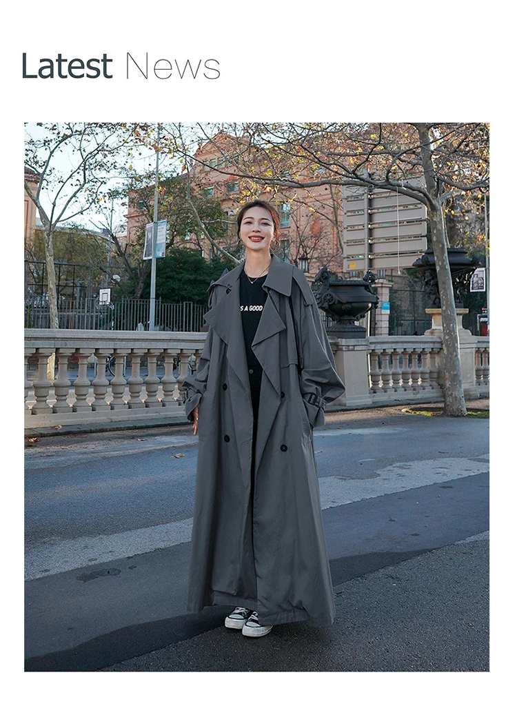 Женский двубортный плащ с поясом, Свободный плащ-ветровка большого размера в Корейском стиле, верхняя одежда серого цвета, весна-осень