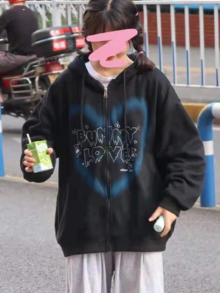 Толстовка Женская на молнии, оверсайз, в стиле Харадзюку, с капюшон...