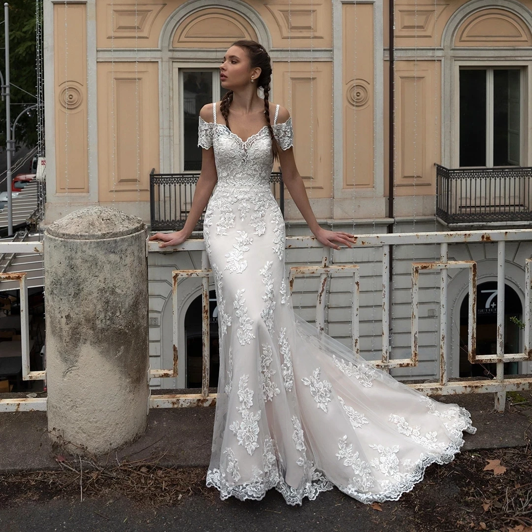 Роскошное Свадебное платье HERBURNL с V-образным вырезом и аппликацией, Тюлевое кружевное платье-русалка, Новое Элегантное свадебное платье