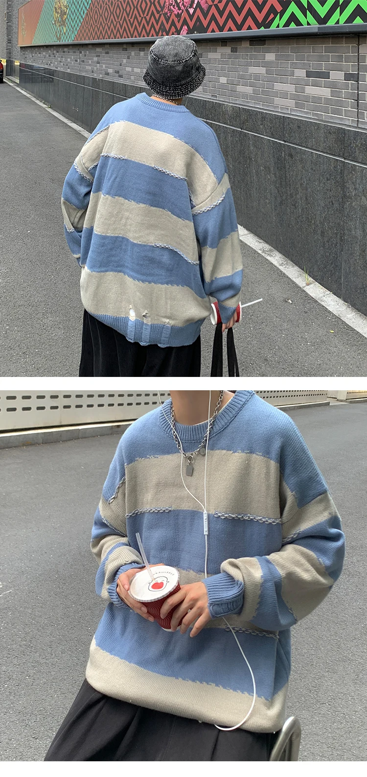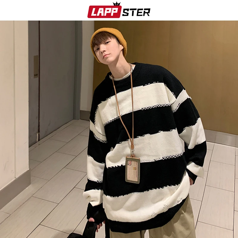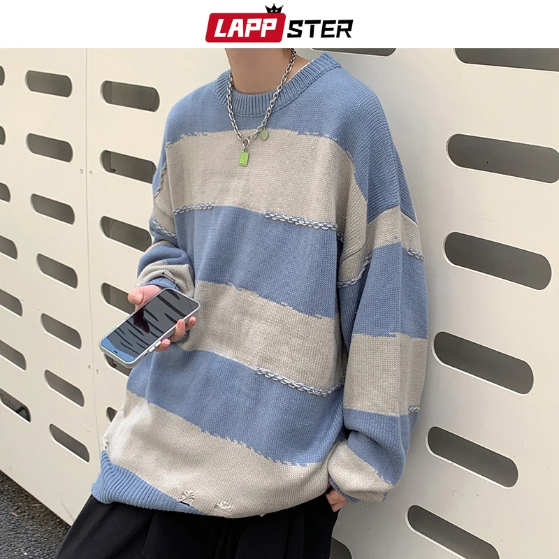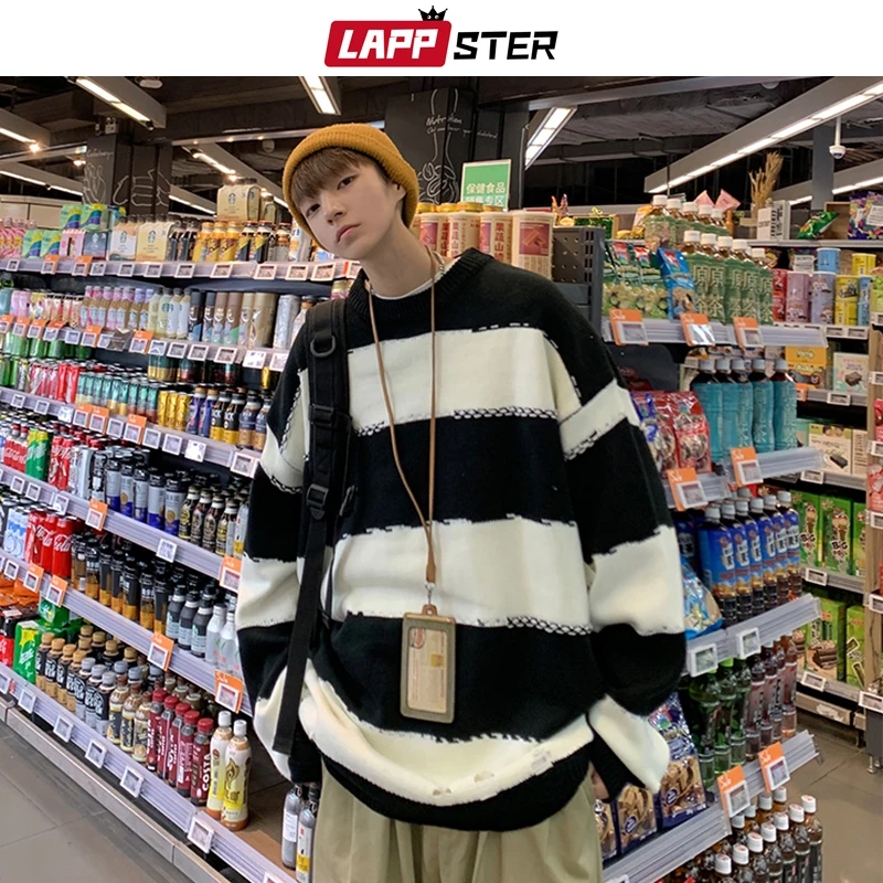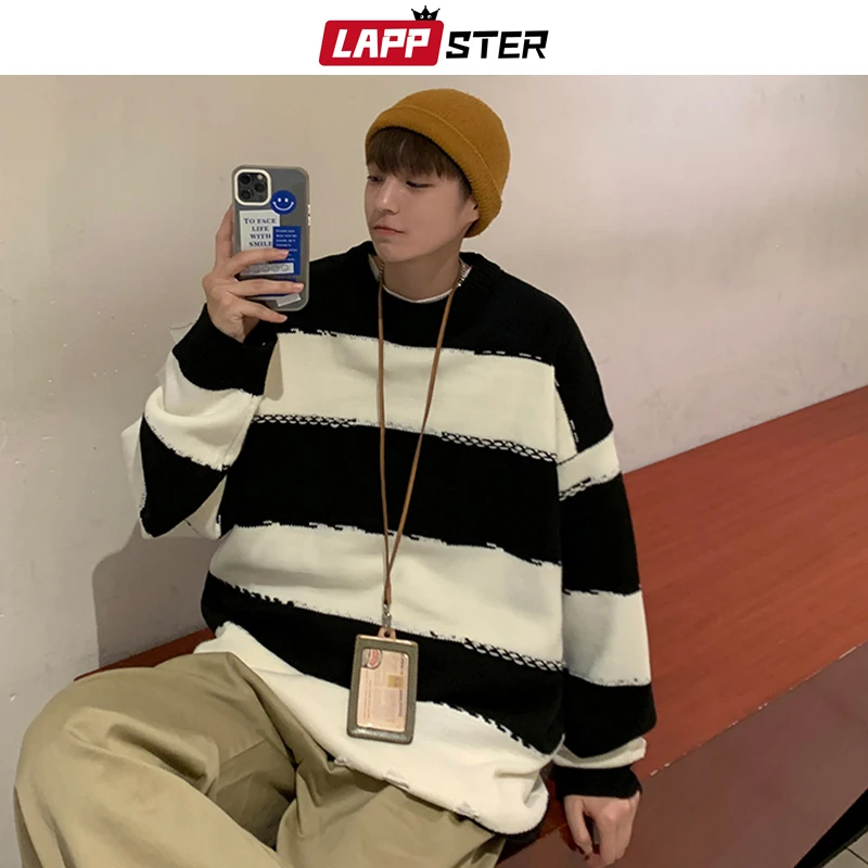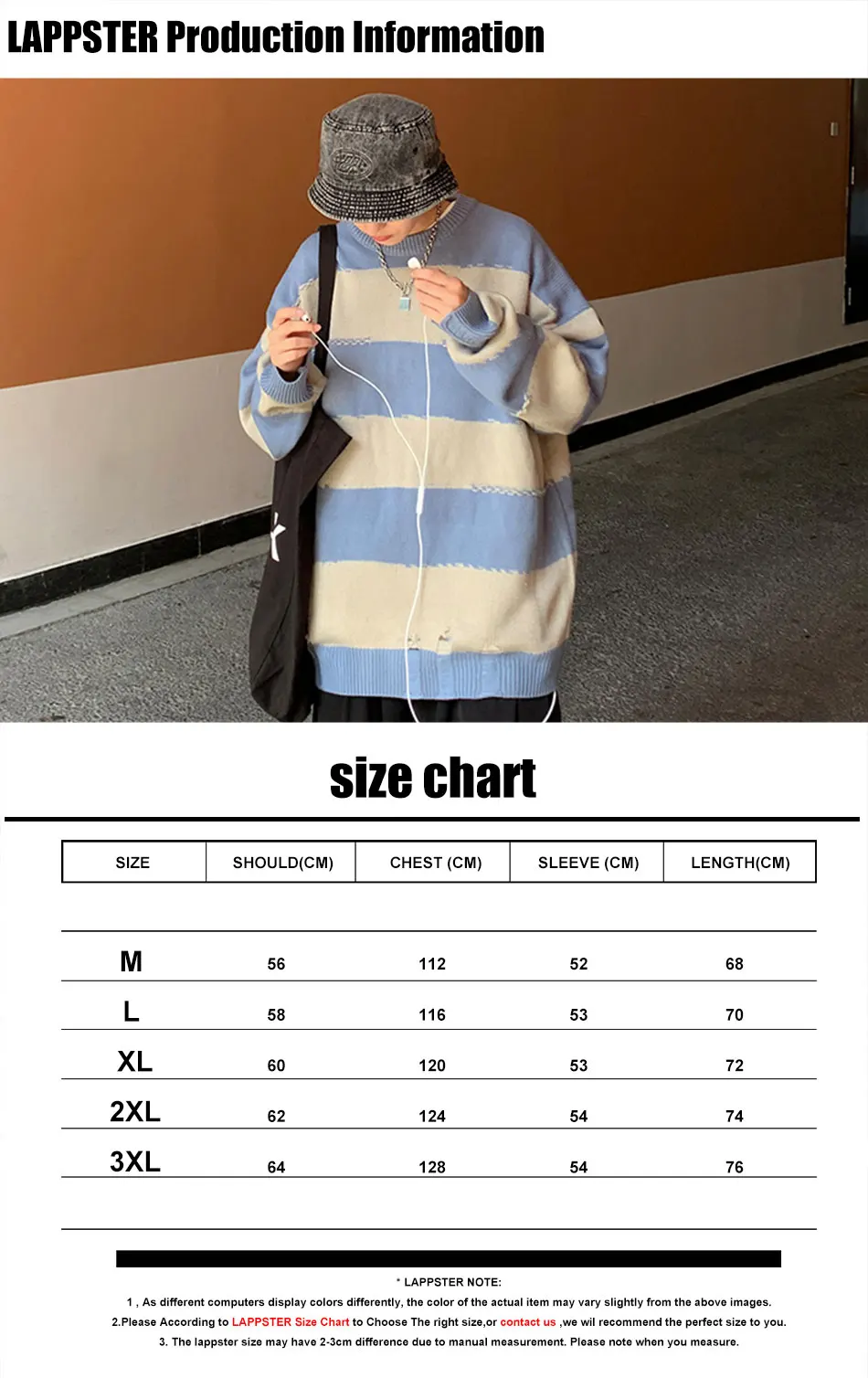 Мужской полосатый вязаный свитер LAPPSTER в стиле харадзюку, 2022, мужские винтажные пуловеры оверсайз в стиле пэчворк, корейские модные свитера Y2k