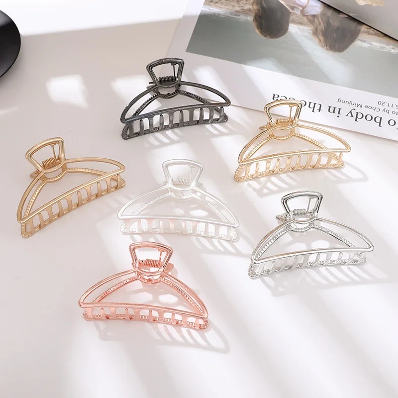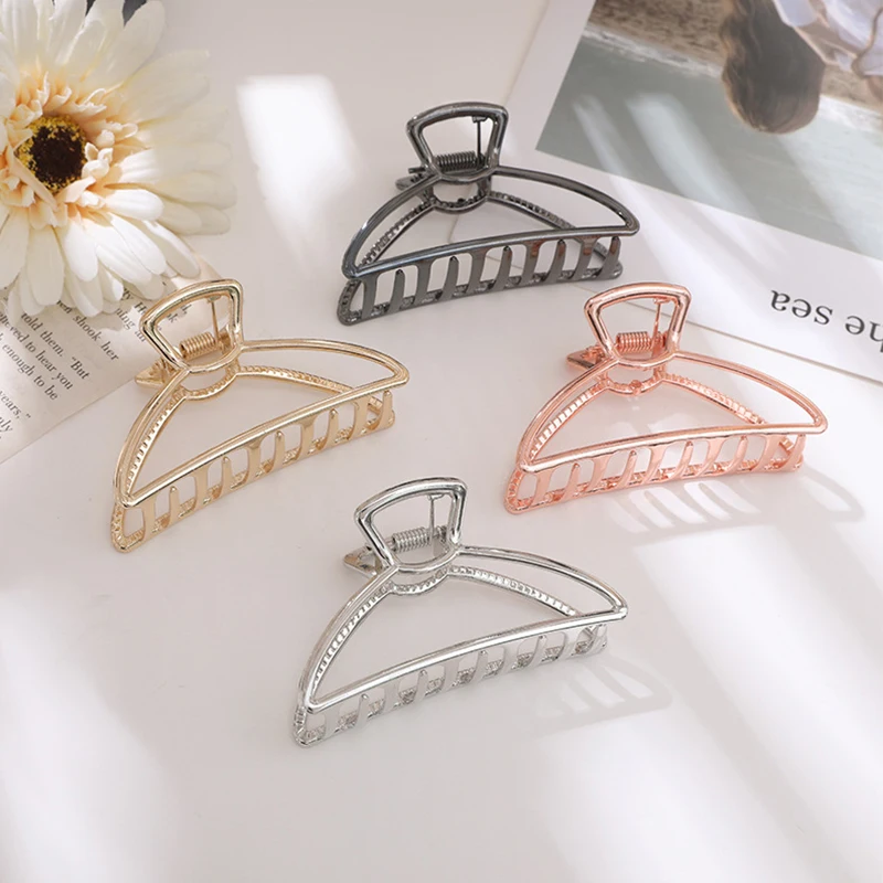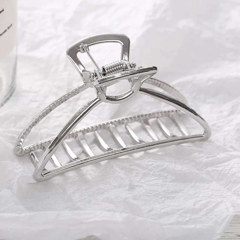 Заколка-краб для волос, металлическая, однотонная, большого размера