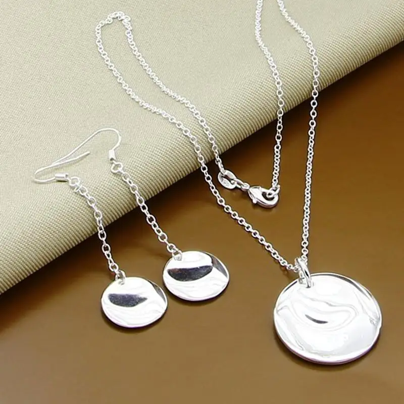 925 серебряные круглые подвески ожерелья серьги набор украшений для...