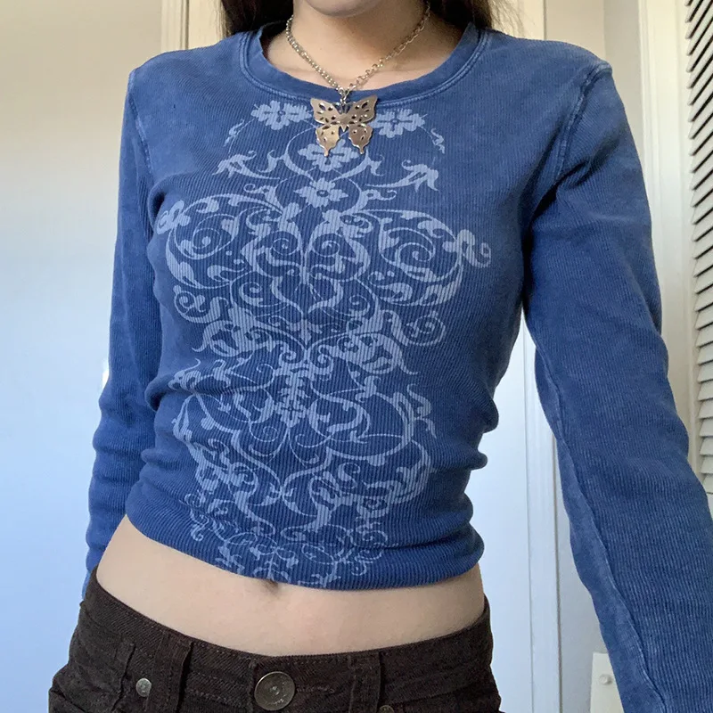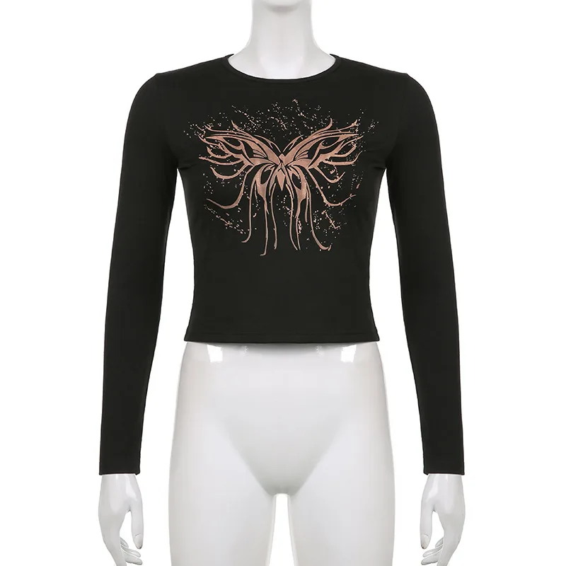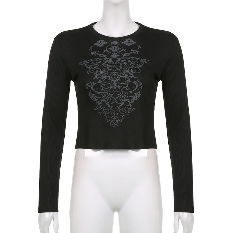 Женский укороченный Топ с длинным рукавом Zenaide 2022, Y2K, модная футболка с винтажным графическим принтом, дизайнерские черные футболки для осени