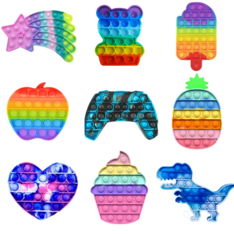 Игрушка-антистресс в виде клубники радужного цвета, пуш-поп, система с пузырьками, специальные потребности в аутизме, сенсорная игрушка для снятия стресса, детские игрушки