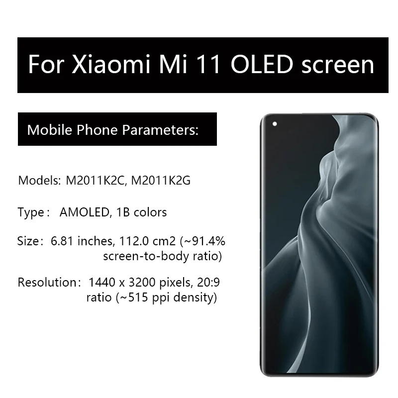 100% Оригинальный 6,81 "ЖК-дисплей для Xiaomi Mi 11 AMOLED дисплей ...