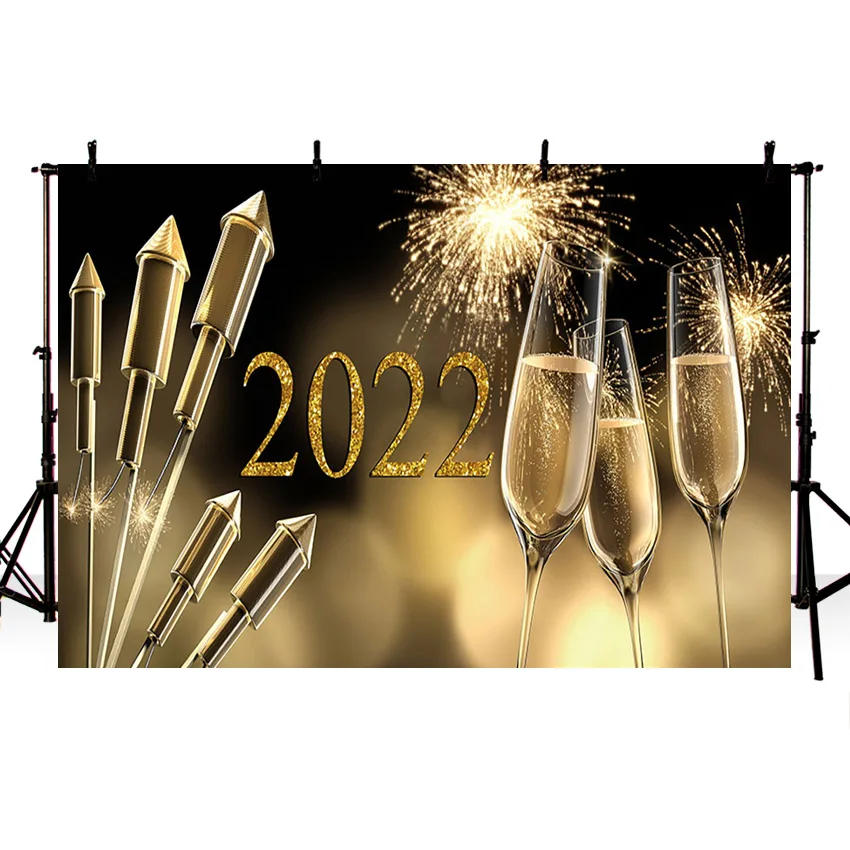 Фотофон с новым годом 2022 Золотой Фейерверк фон для фотосъемки шампанское фон для фотостудии Декор реквизит фотозона