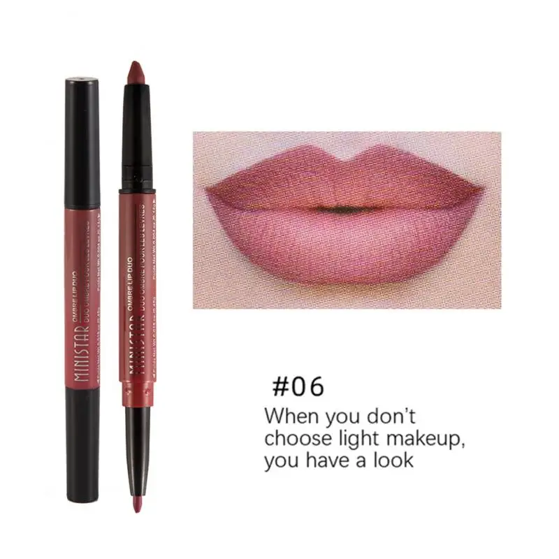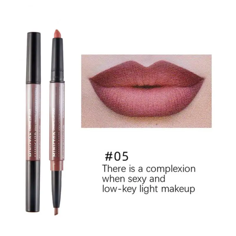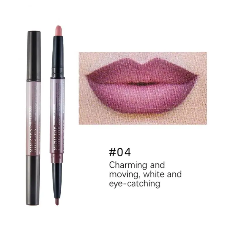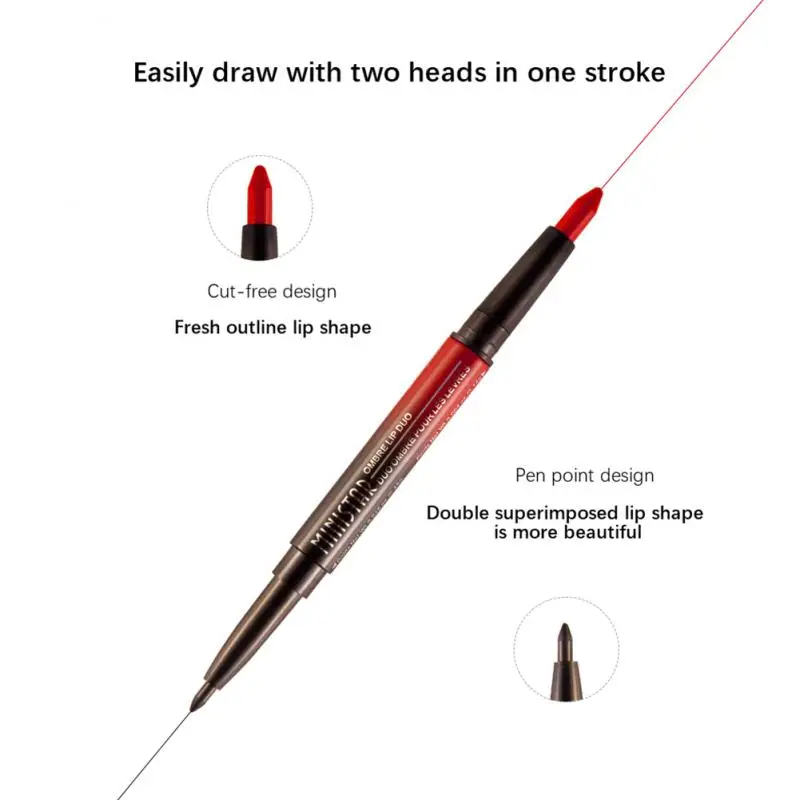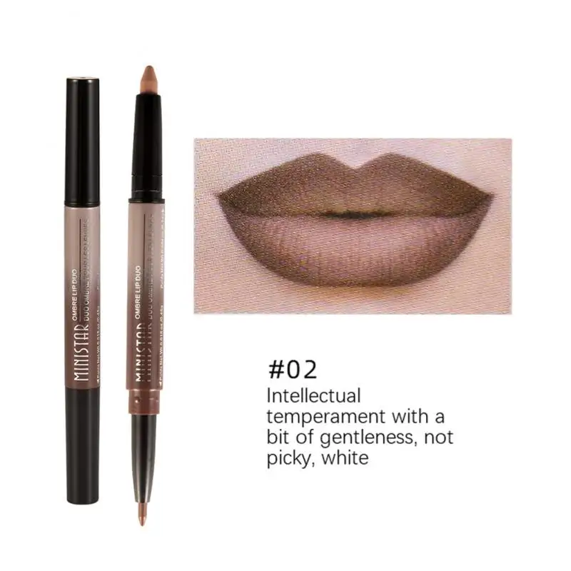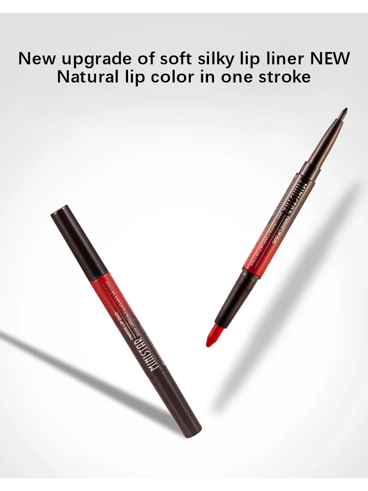 Двухголовый дизайн сочетает в себе помаду и подводку для губ, чтобы создать нежную губу.