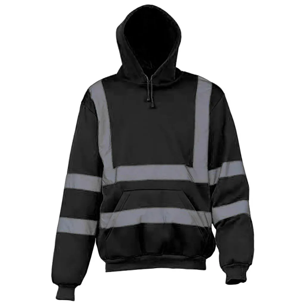 Мужское пальто для работы на дороге, пуловер с высокой видимостью, толстовка с длинным рукавом и капюшоном, топы, блузка, повседневная спортивная Светоотражающая полосатая куртка