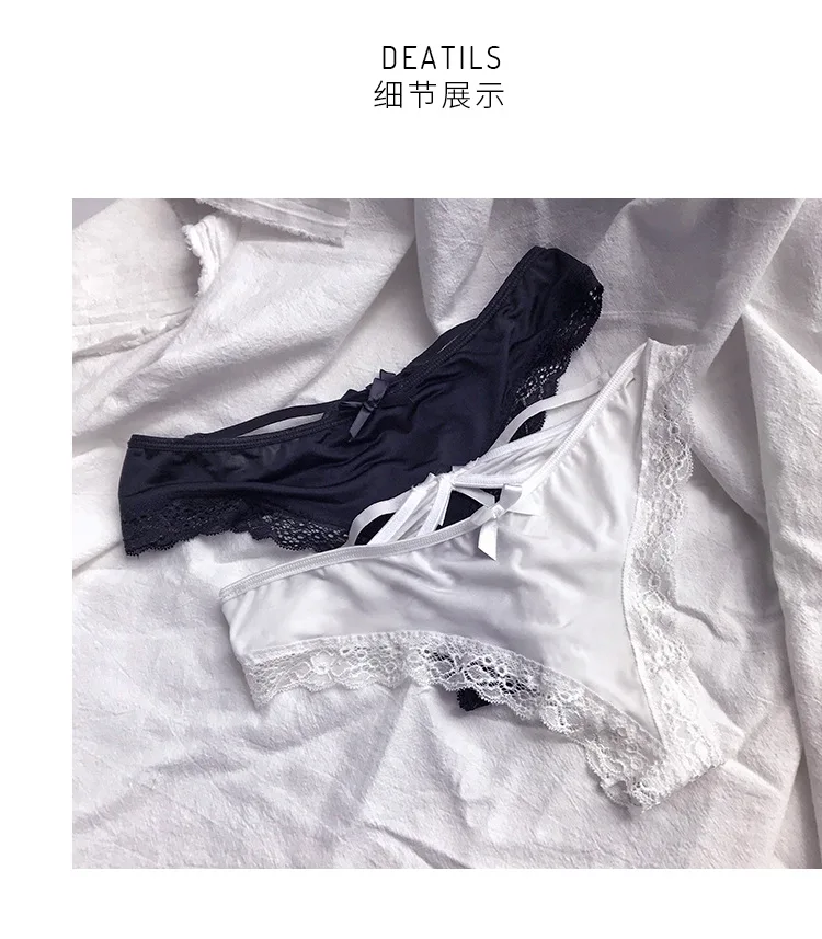 Сексуальное женское нижнее белье, шелковые сетчатые кружевные стринги с бантом, хлопковые бесшовные трусики-танга