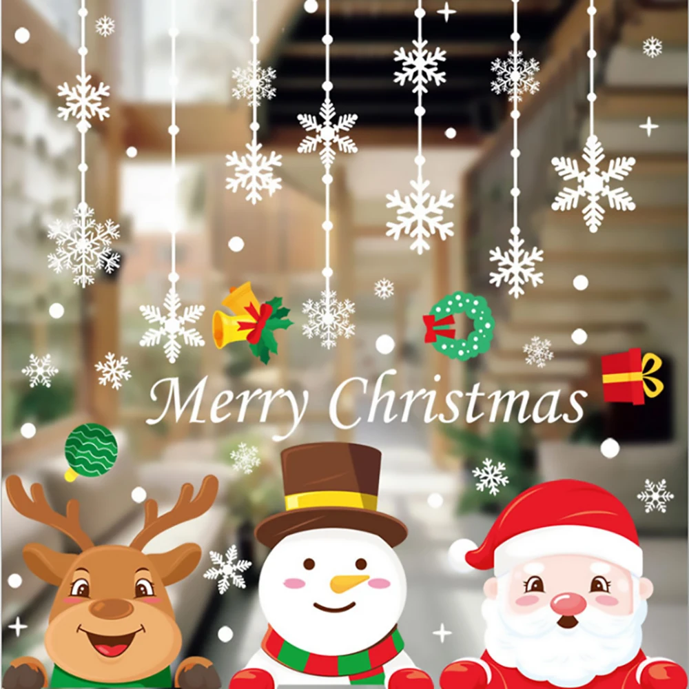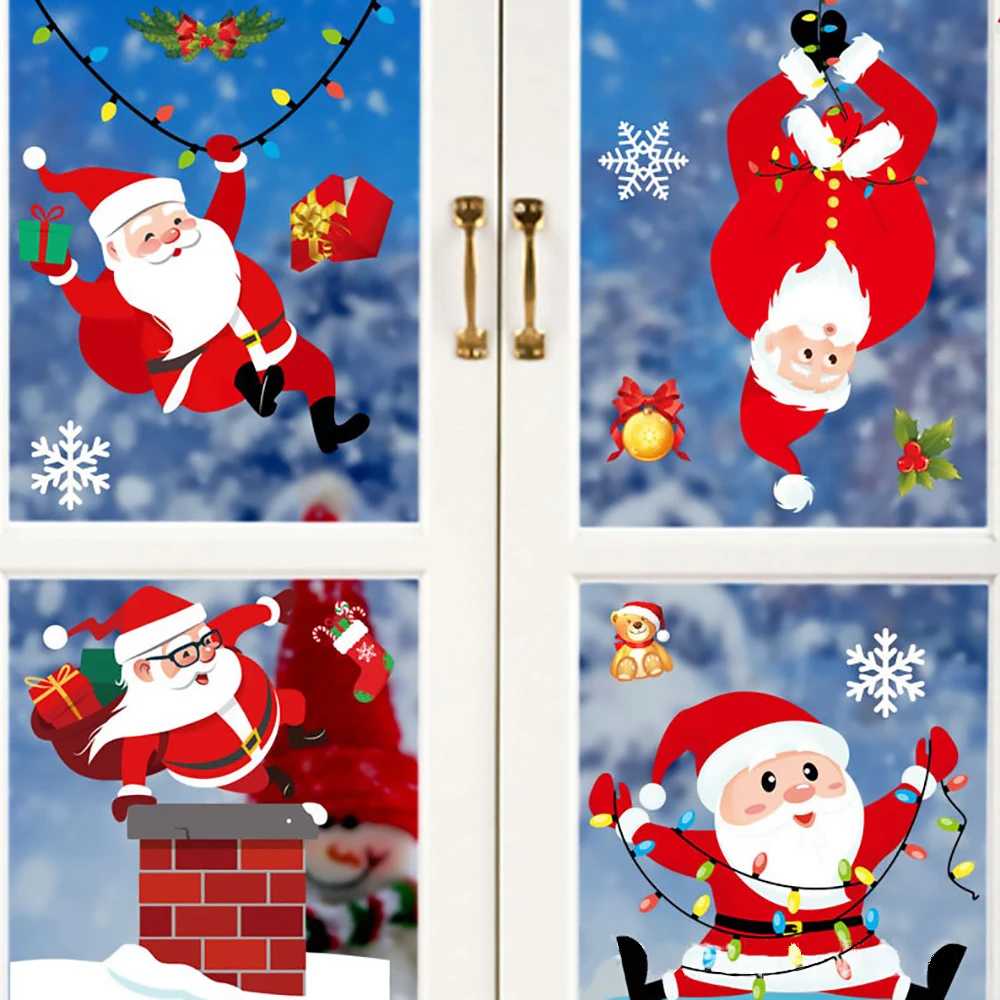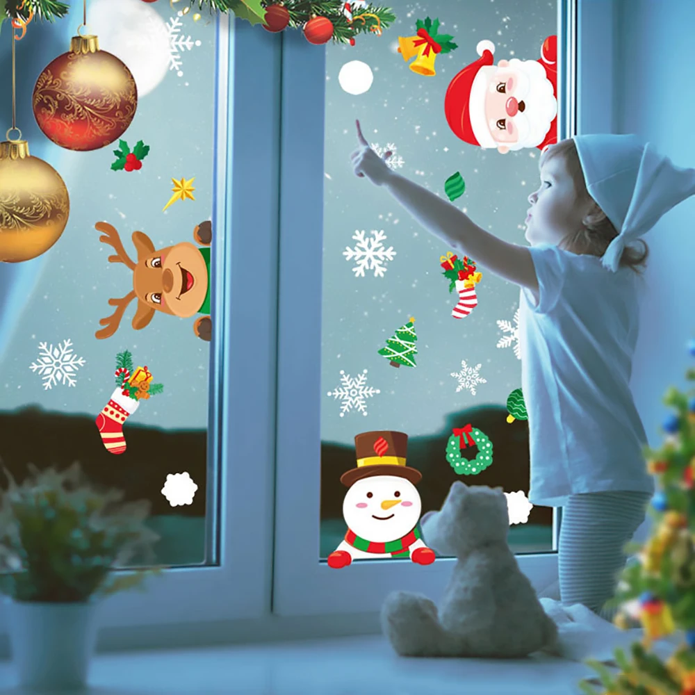 2022 рождественские статические наклейки Санта подарок лося съемные наклейки для окон украшают снежинки настенные наклейки новогодние вечерние стеклянные наклейки