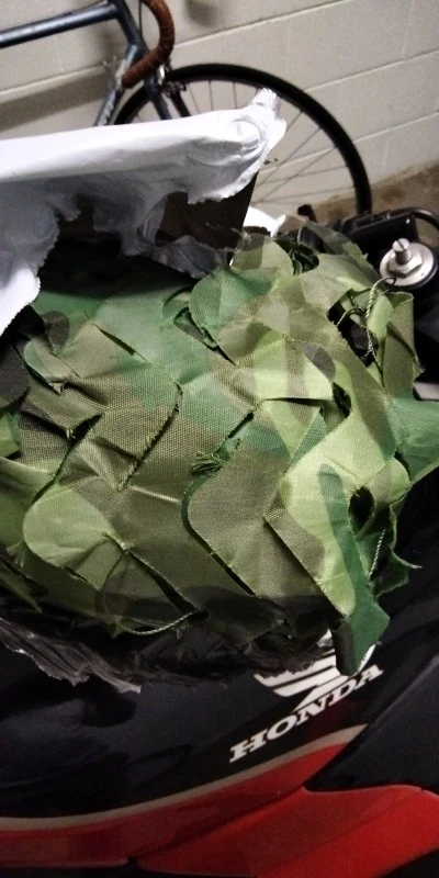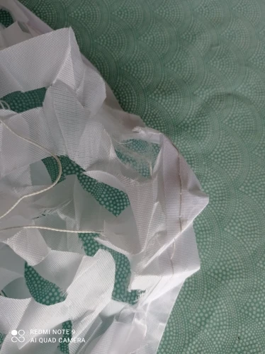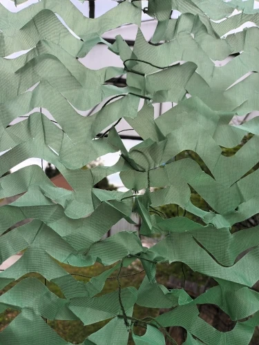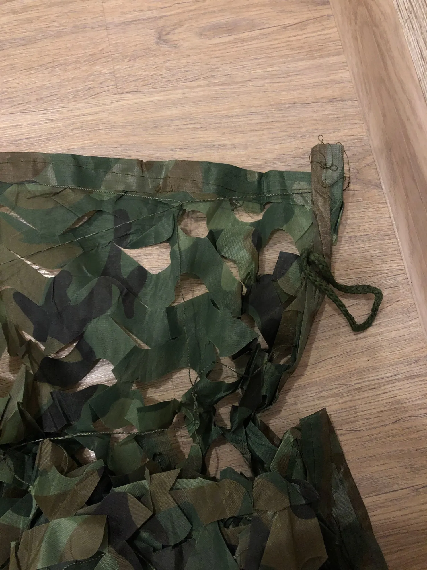 В маскировочной сетке оказался большой разрыв ячеек (целый ряд), который был связан ниткой