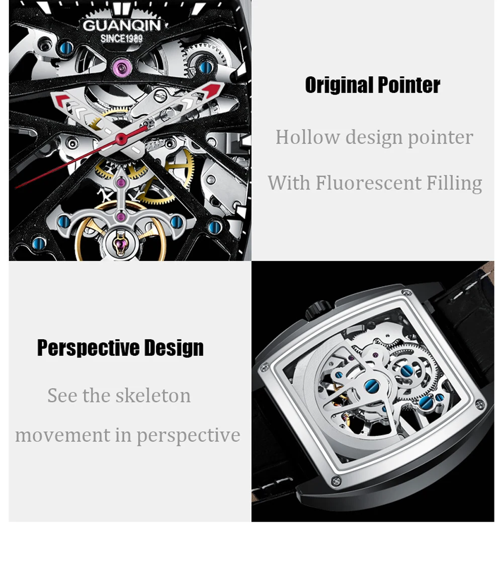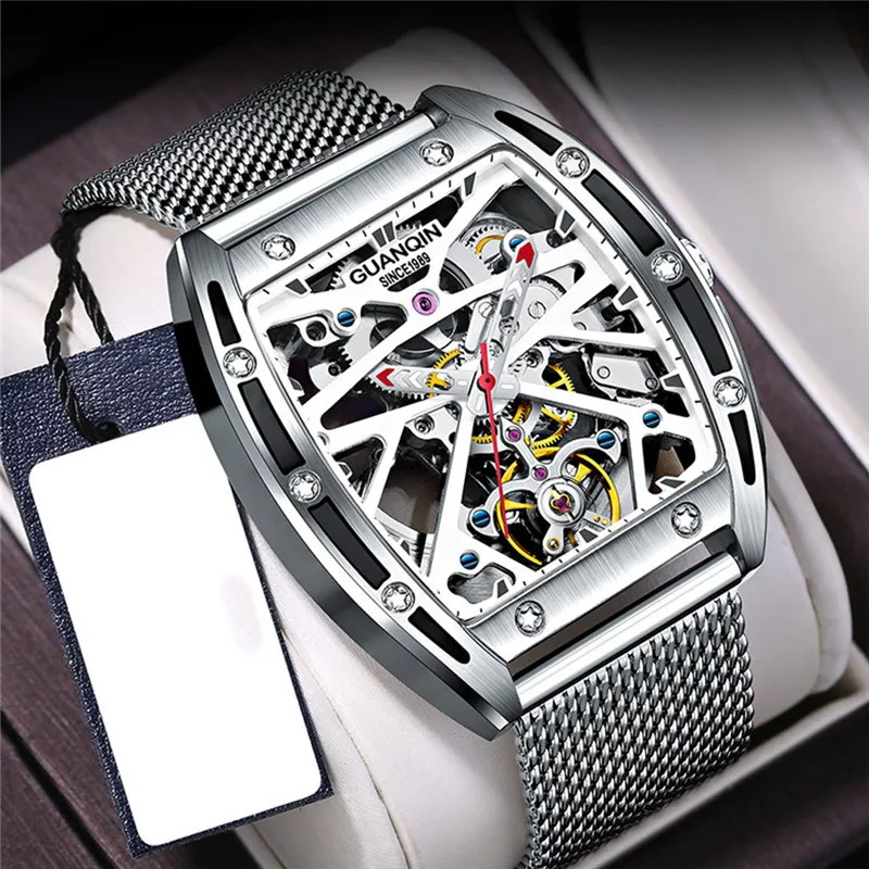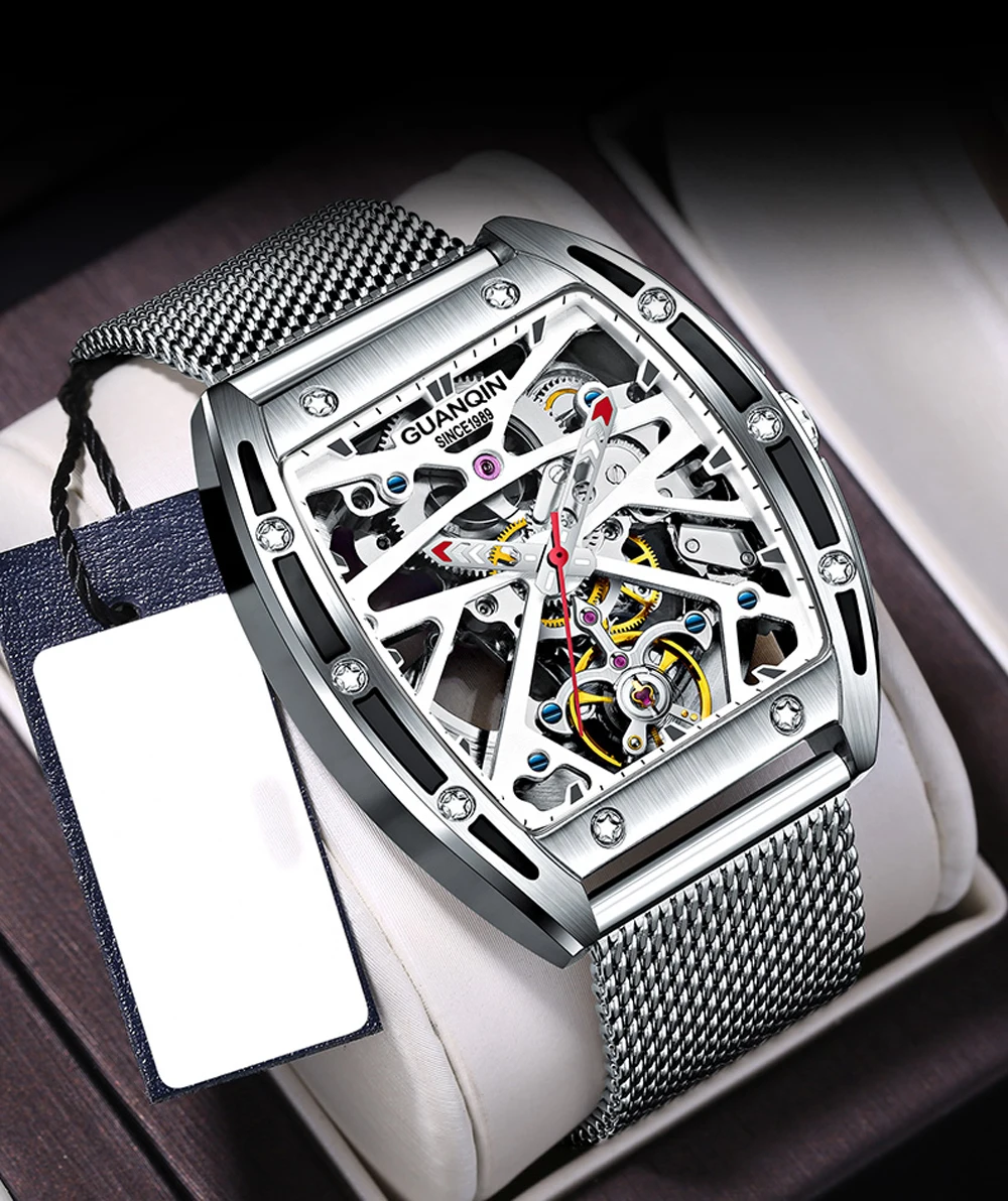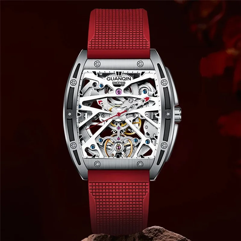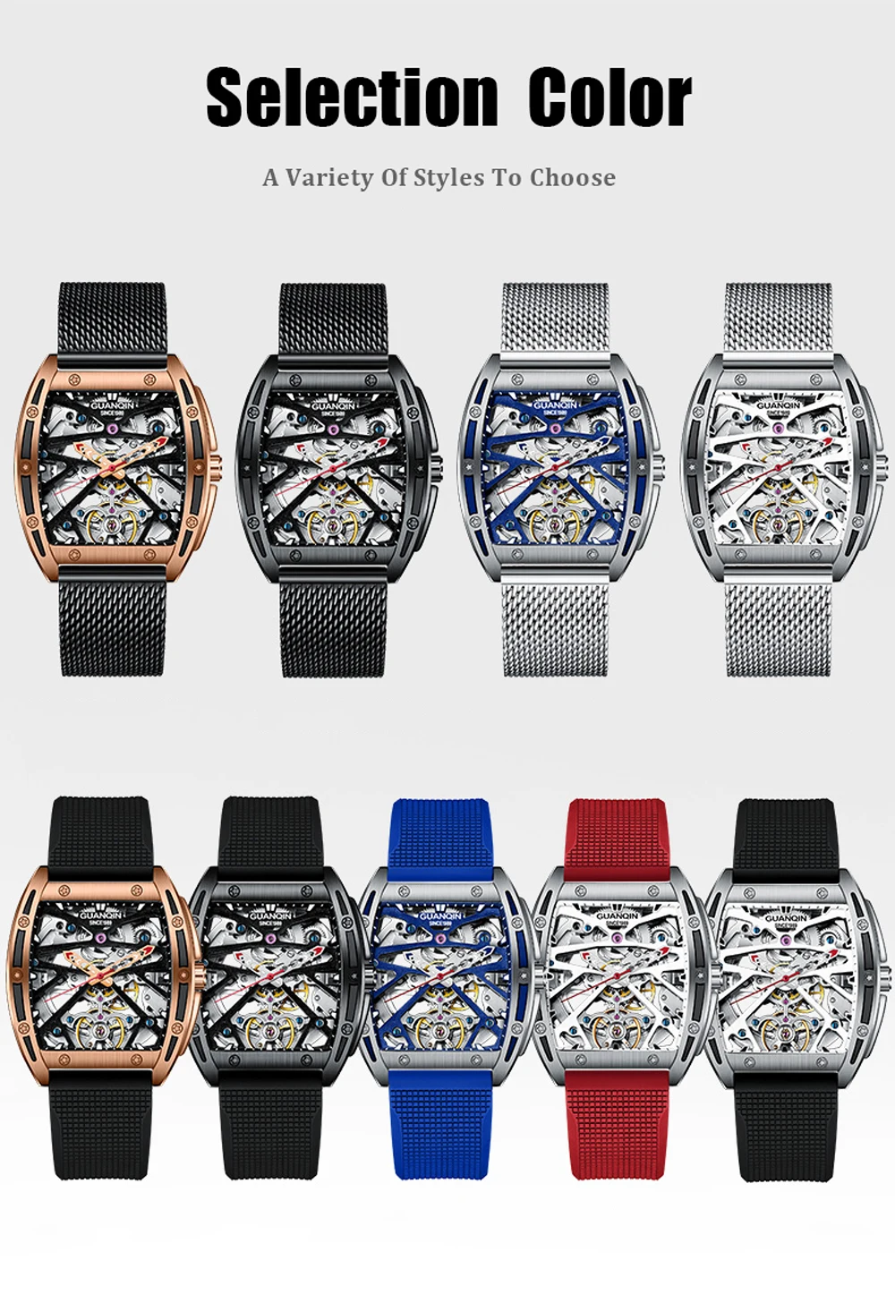 Часы наручные GUANQIN Мужские механические, Роскошные автоматические водонепроницаемые с сапфировым стеклом, с турбийоном, 2021