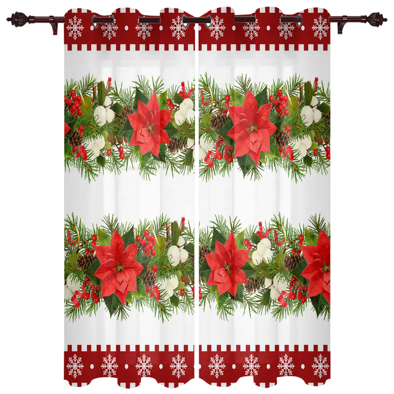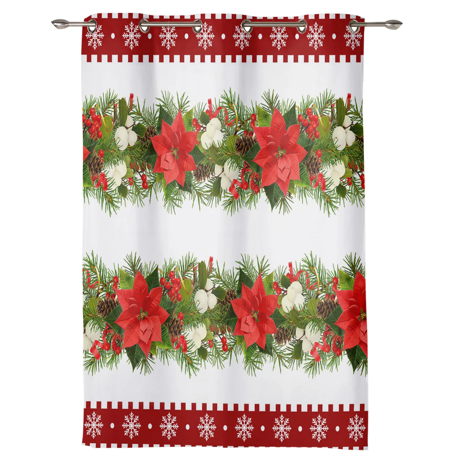 Оконные шторы с рождественскими цветами, снежинками, ягодами, для спальни, домашнего декора, кухонные занавески, рождественские занавески для гостиной