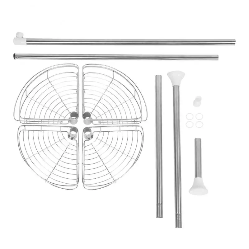 Характеристики продукта: стоящий в вертикальном положении, высота может регулироваться в соответствии с потребностями. Не нужно устанавливать, не нужно пробивать. Большая емкость, максимальная несущая способность металлического сетчатого диска составляет 10 кг, без деформации или падения, сетчатый диск изготовлен из высококачественной нержавеющей стали; его можно использовать в таких местах, как кухни, ванные комнаты и т. д.