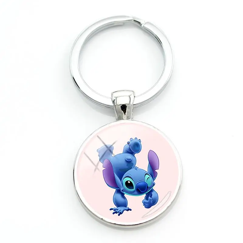 Disney Lilo & Stitch, милый брелок для ключей с мультипликационным принтом, автомобильный держатель для ключей, стеклянный кабошон, подвеска, брелки для мальчиков и девочек, новинка DSN453Изображение продукта: