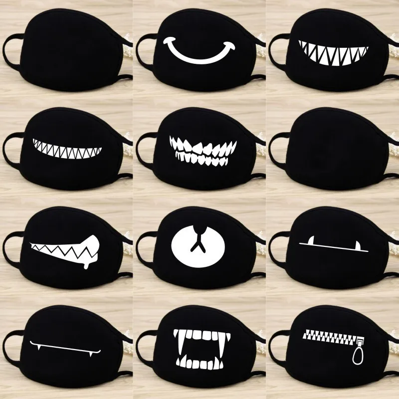 Высококачественная хлопковая маска для лица унисекс, Модная креативная черная маска для рта с рисунком зубов, зимние ветрозащитные пылезащитные Теплые маски